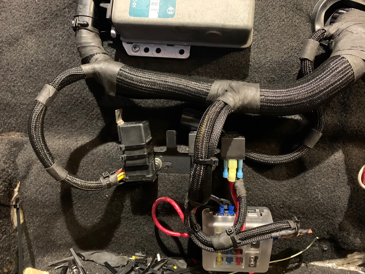 Pro-tip: Work like this is tedious. The following photos don't do the portion of this project justice. All-in-all, just organizing and forming the harness took me the better part of 20-hours. It will be 'messy' at times, so I've found that the best practice is to jump in and re-organize and clean-up every so often using male/female connectors to shorten and consolidate color-schemes and then replace those wires with the correct gauge or color-code. I used zip-ties (alot of zip-ties) to form a section, run the wires, cut and re-solder, only to find a better or 'cleaner' way as I proceeded. Patience is key. Once I had the general form down and 'tested' the startup every so-often, I used electrical tape to form the structure of the harness, and then wrapped everything with safety sheathing. For this specific section, I used an open-ended safety sheathing in case I have to get back in there. Finally, I added a fuse / ground block for everything related to engine management. For the time being, this keeps everything tidy, as well as keeps my options open for the future should I switch to a different engine management system (dare I say ITBs? (IMG:style_emoticons/default/w00t2.gif)) After the main ECU harness was done, I spent this last weekend sorting the center-console gauges and hooking-up the Diagnostic plug. Easy enough in my configuration, as there are only about 5-connections for various sensors, RPM, and codes. Though I'm not 100% sure where it will be located in the future, I'm currently thinking inside the center console or underneath the dashboard. We'll see. (IMG:style_emoticons/default/bye1.gif) |