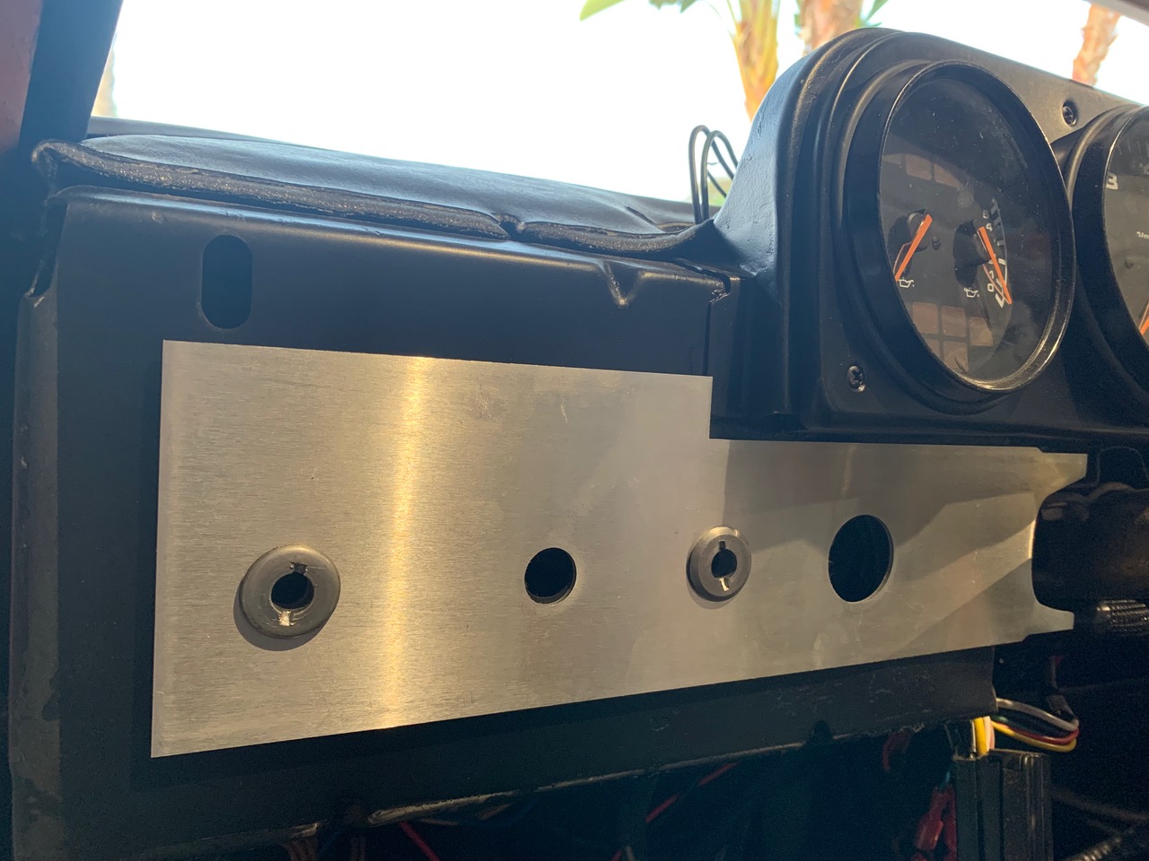 In-between wiring (to keep my sanity) I've been trying to tackle the basic 914 related stuff; Clutch and Accelerator cable, Shifter and linkage, and Dash-fascia. Those following along will remember that a few weeks ago I was having trouble finding the dash-panels for a 914/6, so I made my own, and added some customization by combining the radio plate with the piece that starts on the Drivers right-side.