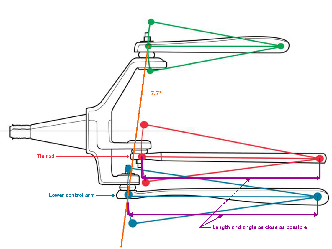 A minimum,should not be too difficult with the 914's sectioned chassis. The length of the control and tie-rods should match,the angle too. You will develop problems otherwise. https://www.google.ca/search?q=front+suspen...TXtA0aAopJYM%3A Ideally,the tie rod would be carried by the lower control arm,eliminating any unwanted bumpsteer. That it hasn't been tried is because of the weight,complexity and costs involved. The compromise is then the separate rack and arm,in front of the spindle,working the same as behind. The rack up front makes for less room for the spare tire,which can be raised to clear the rack. https://www.youtube.com/watch?v=lcWbUX5KCbI Watching a racing 904 as an incentive,more power,more tire. / |