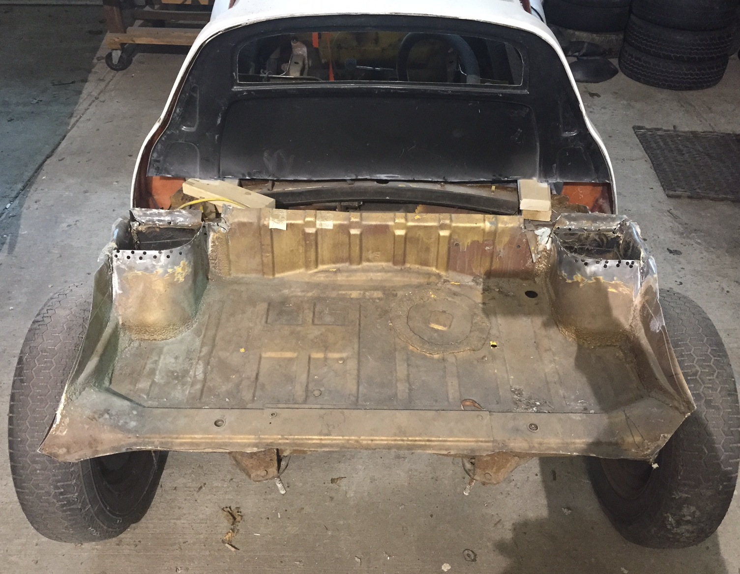 Ok, so we cleared a bunch of cars out so I felt I had the time to get back on this project. Also, Thursday's I'm at the shop by myself so no distractions. I think I had been dreading this day because it is kind of the point of no return, cutting up the yellow 914. There is no going back now. I will start fitting the rear soon, then move forward. I'll probably send the rear suspension out to the guys at Elephant to get the ball rolling on that.