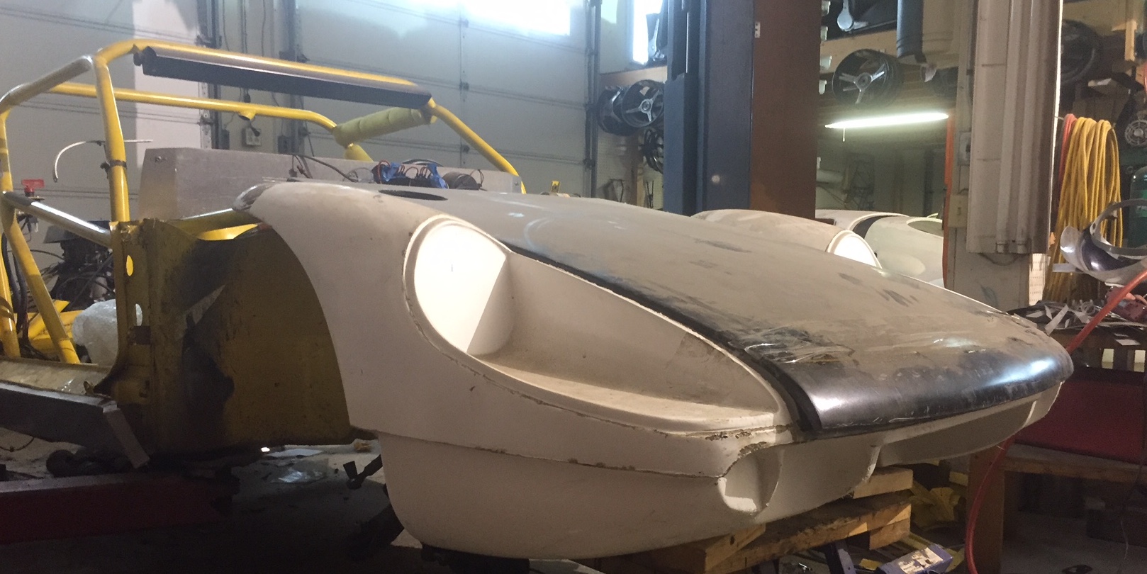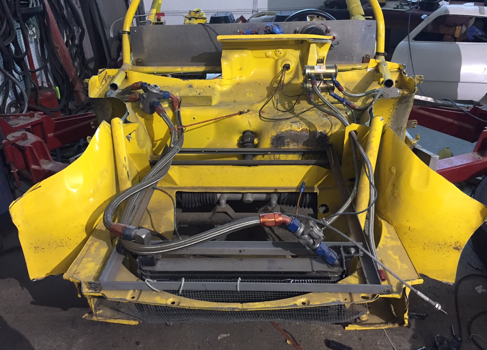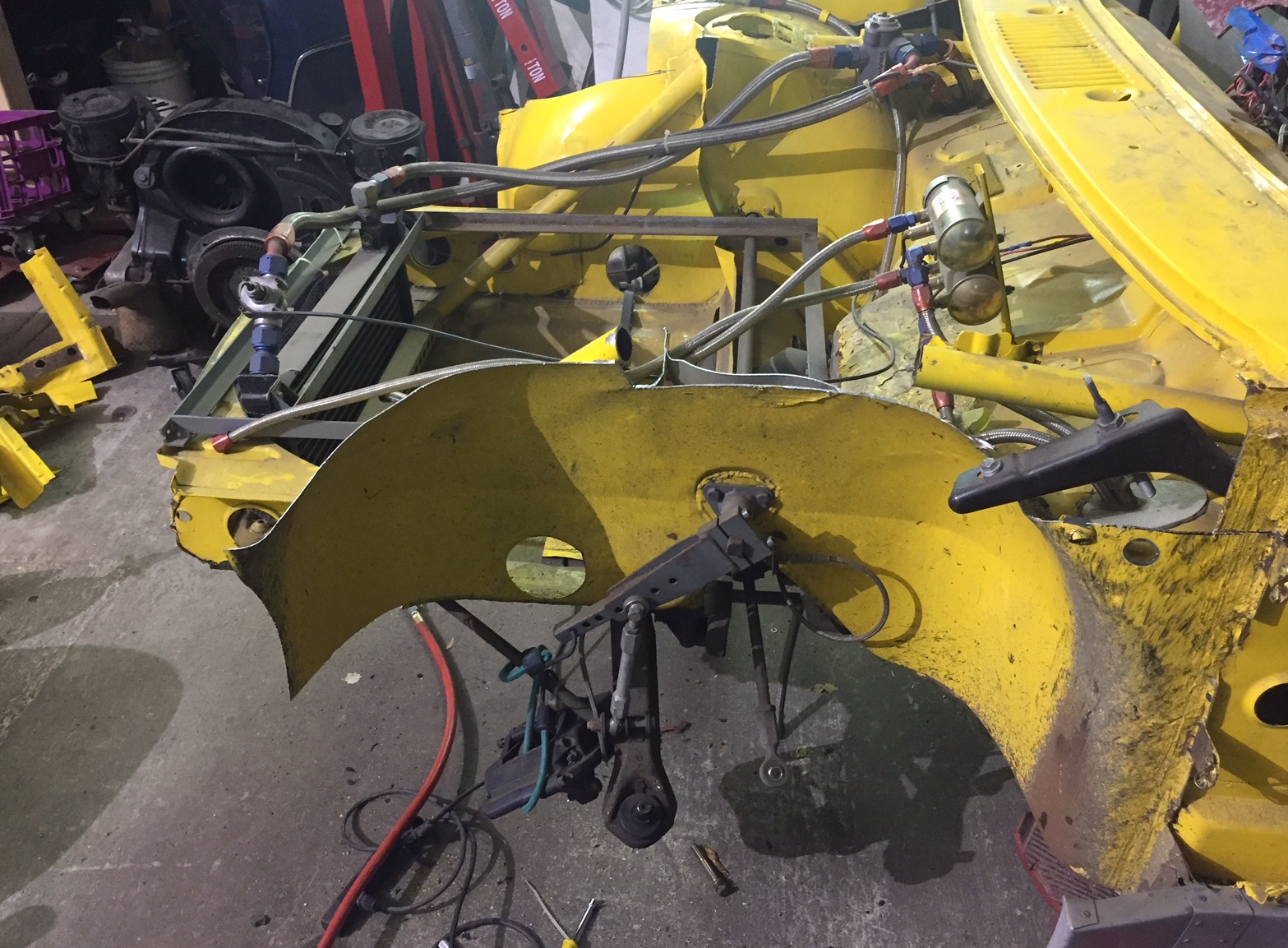 Ok, today was dramatic, starting to take shape. The front nose is right where I need it. I will have to relocate the oil cooler from where it was on the 914. But I was able to retain 914 wheel wells so that is good news. This is getting fun again!