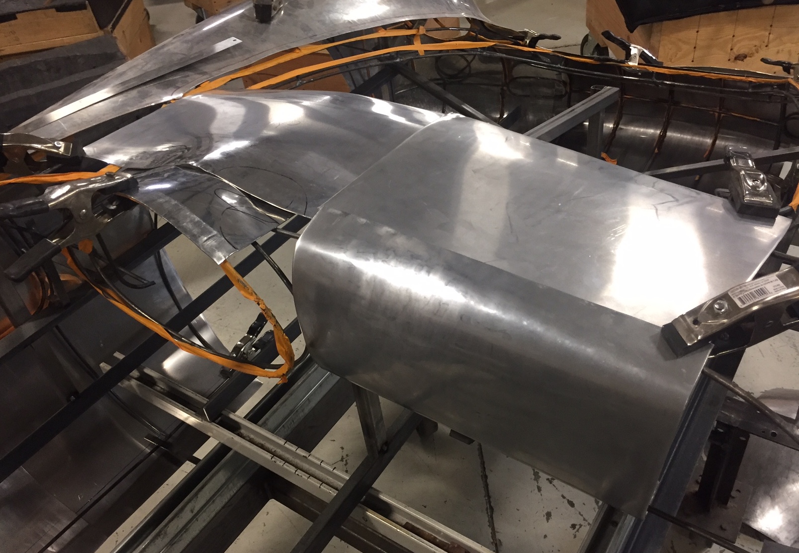 Well, I had planned to work on the 904 this week but other Porsches intervened. First the 993 blew up in my driveway, it actually just backfired, but it was enough to blow all the hoses off, so that sucked up a big part of a day dealing with it. Then today I flipped a coin and decided to drive to Wray's to work on the 550. Now that most of the outer panels are done it's really starting to take shape. I worked on the dash today and yes, every dash panel you see was formed by me, you can check my hairy arms in the pics!