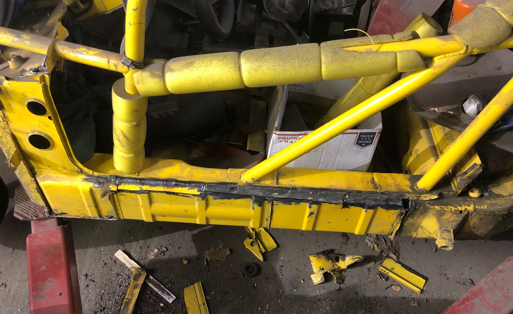 Hoping to get the car back on it's feet this week than the last big cut, right down the center of the car. I had to say goodbye to the big brakes today. Attached thumbnail(s) |