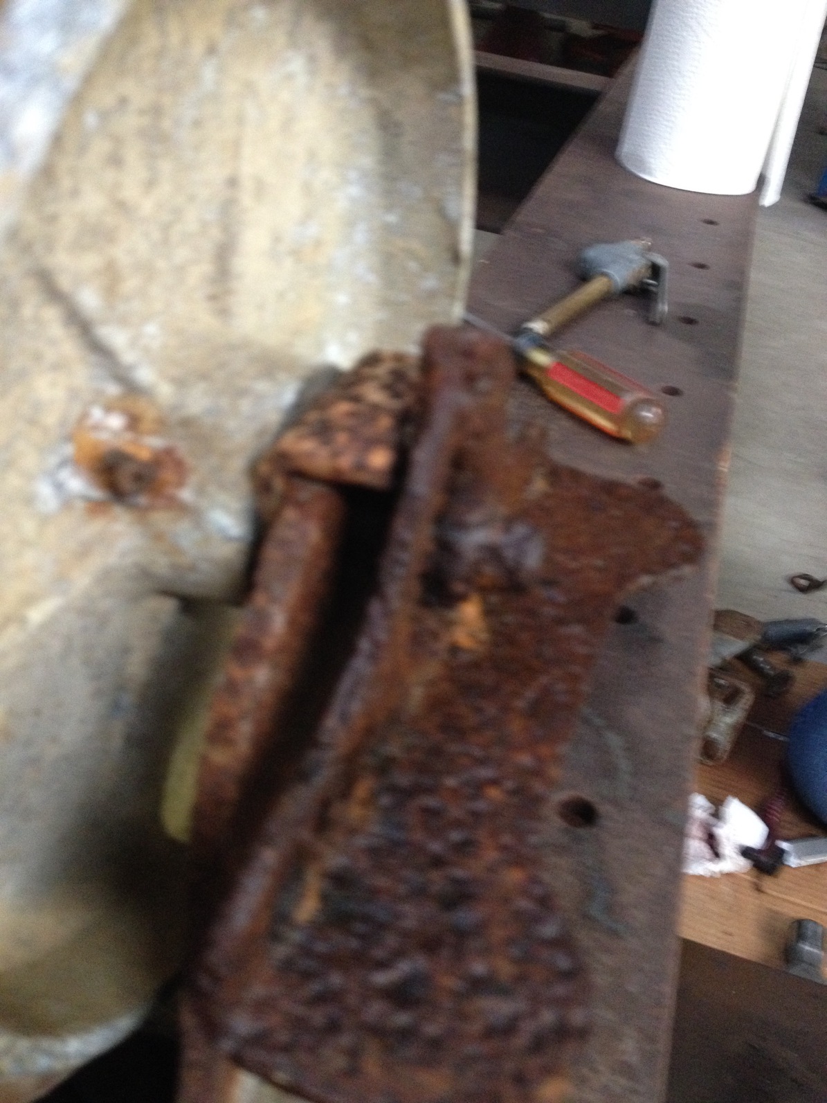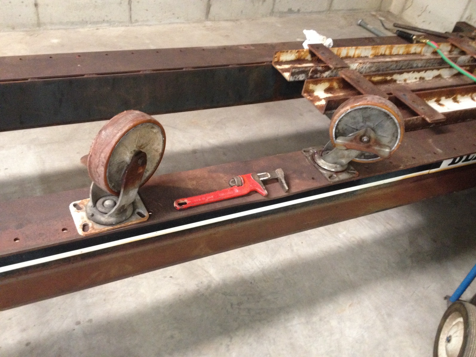 It had been sitting in another building of mine and we've done some cleaning and moving to make the space for it and the project on the rotisserie. This thing is big and h e a v y! We've take the casters off the left side to clean them and glue the poly tires on the aluminum wheels. Attached thumbnail(s) |