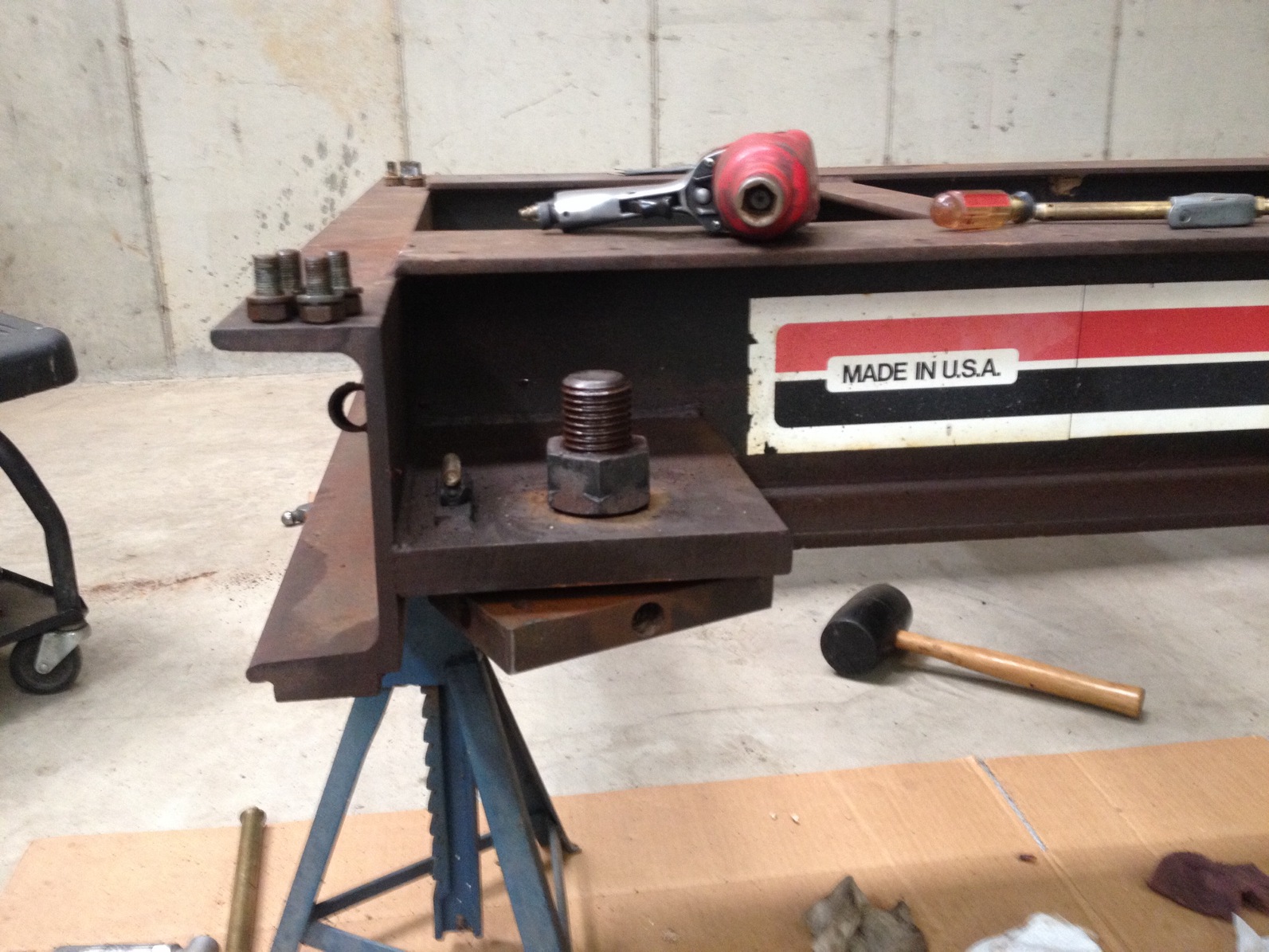 There are two leveling adjusters that were a little stuck. We had to resort to the acetylene torch, the little propane torch wasn't enough