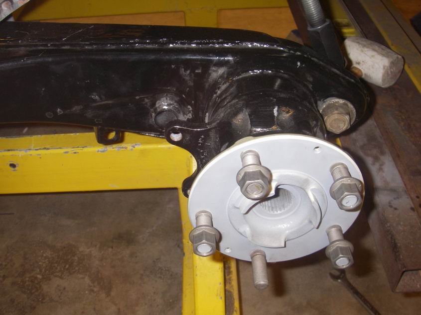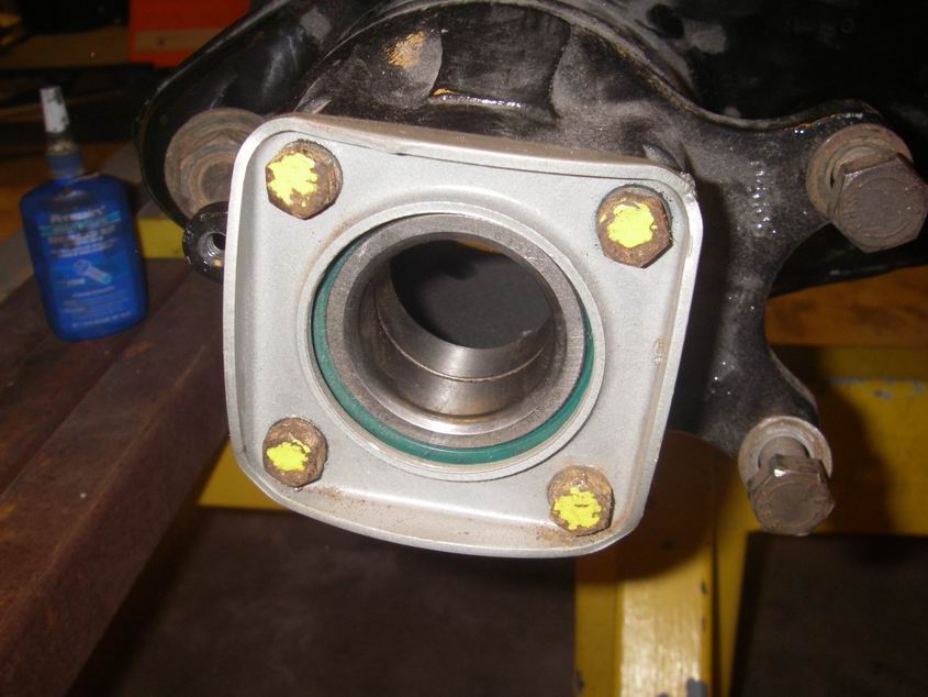 Pulled the frozen 911 hubs into the bearings. But first applied thread lock and torqued the bearing retainers. Everything that gets torqued to spec gets marked. No hindsight and oh Shi# did I do that crap? Cant forget the 5mm spacer.