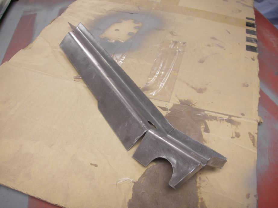 1)FABRICATE THE PASSENGER SIDE TUNNEL REPAIR PART. Fabrication is easy. Doing it twice with opposites is a challenge. Even know the parts are dimensionally symetrical they are not the same. ( Cutouts, notches etc) Came out a beautiful piece of metal !!! Attached thumbnail(s) |