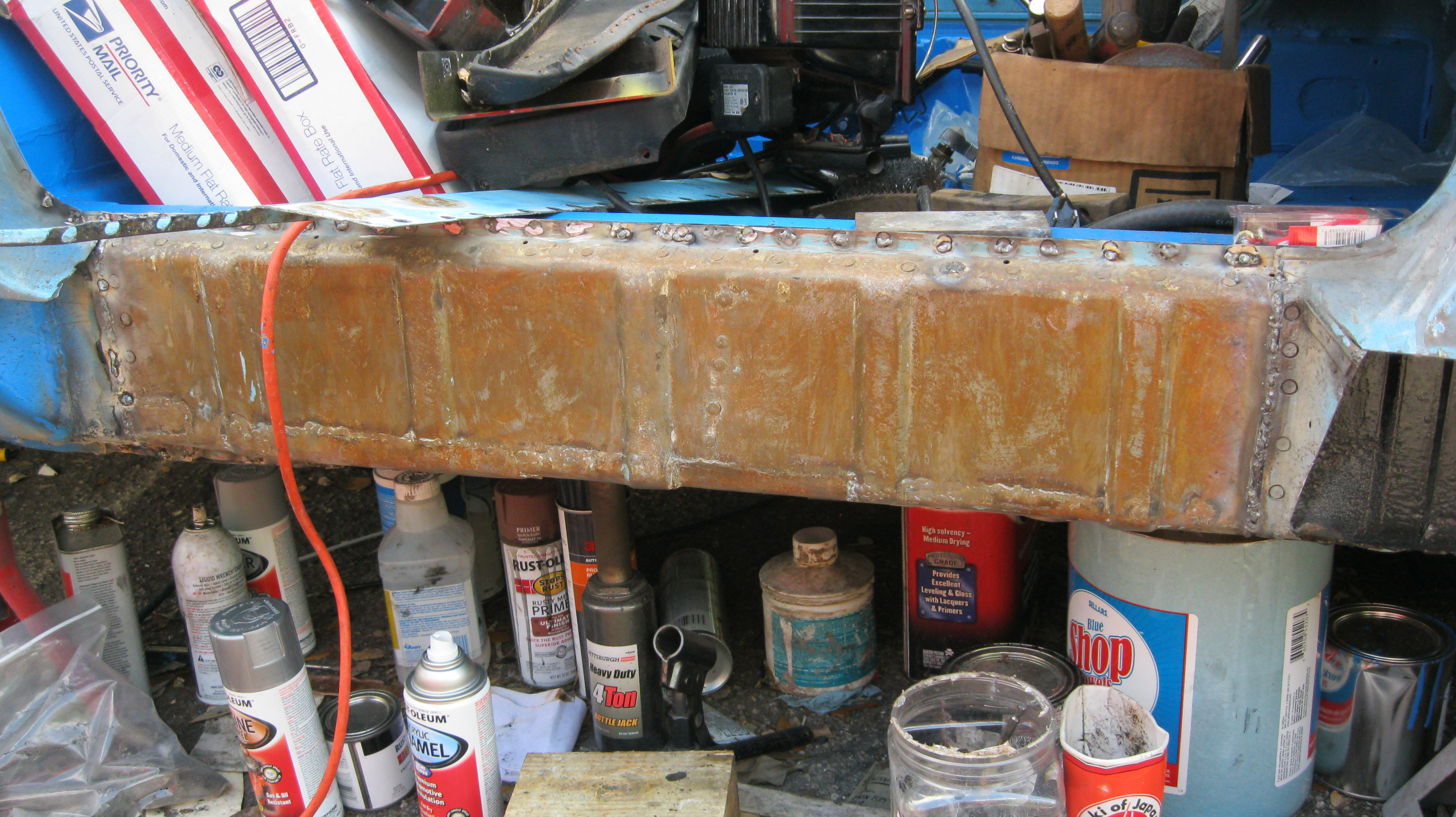 Once I was satisfied I had everything pretty well in place, I made the repairs to the outer portion of the long and welded it up. It had a few holes in it initially, but I'm pretty happy with the end result. I still have no idea why I get the flash rust after treating with Metal Prep/Ready.