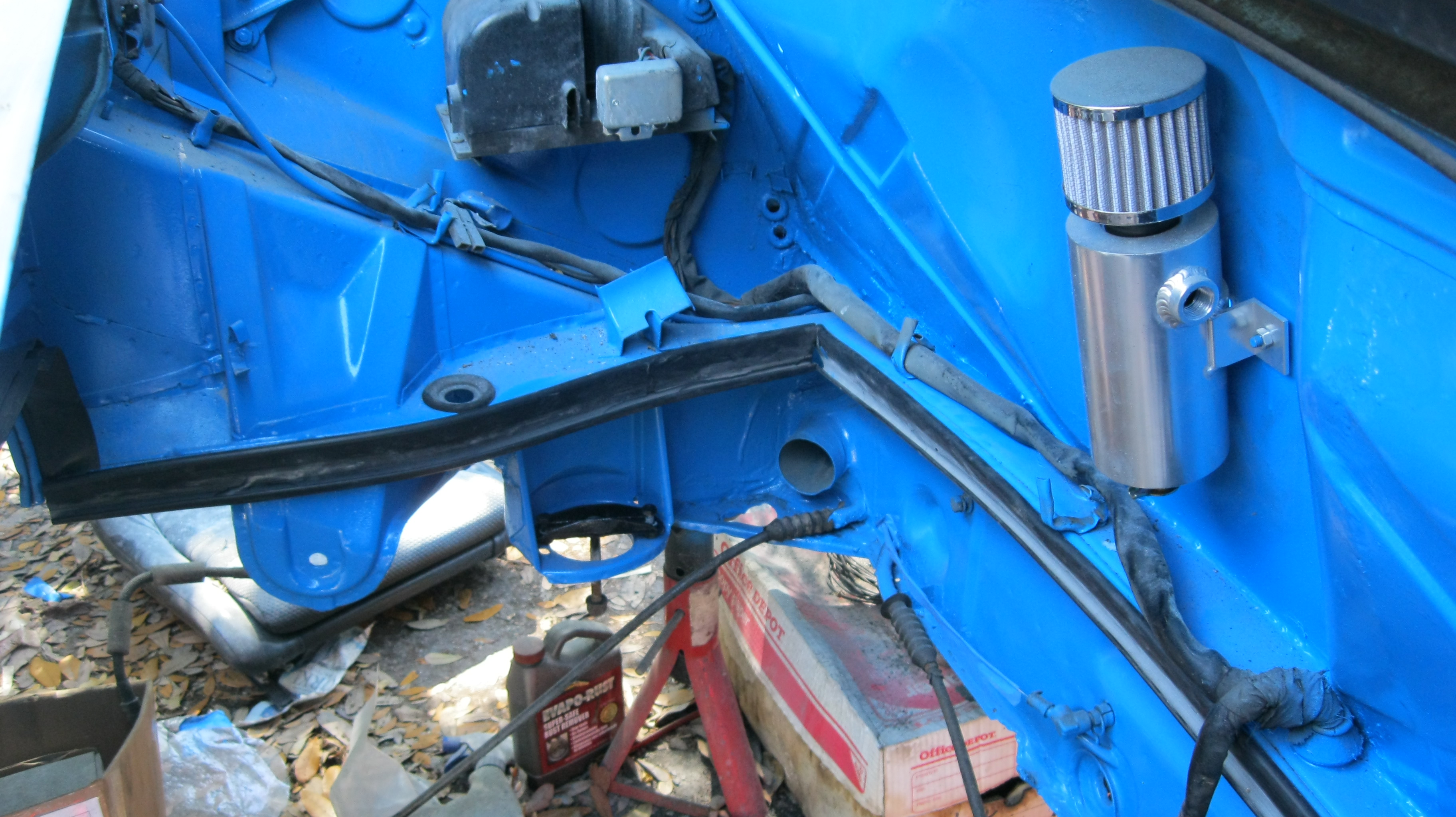 Engine bay and the breather bottle
