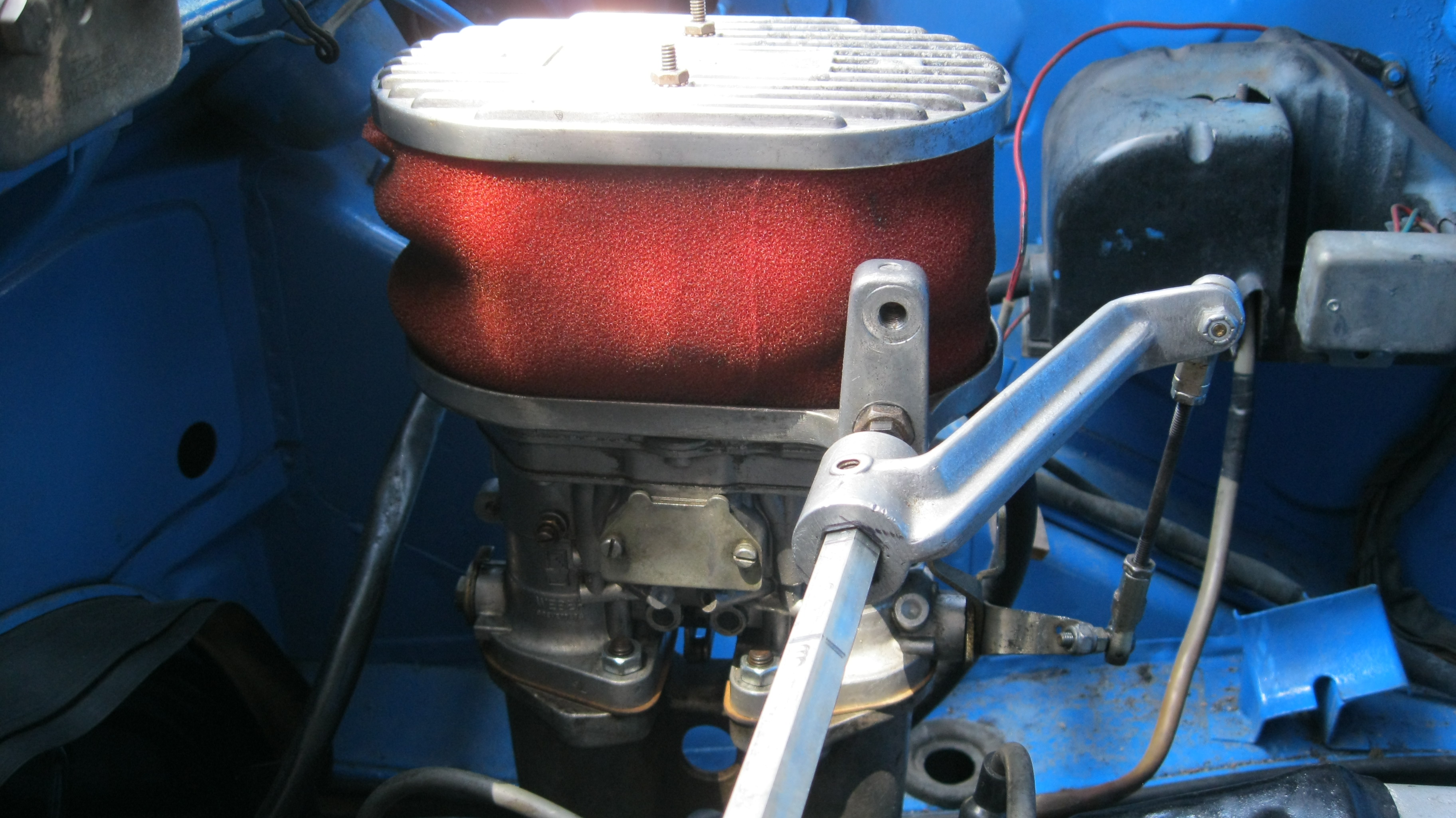 My buddy and I pulled several long nights trying to get the car to Sebring, as I mentioned previously. We ran into some issues, as expected. Most of it was due to fitting the dual carbs and wishful thinking that the bits of linkage I had would all match up, since the car had a progressive on it originally. Again, wishful thinking.