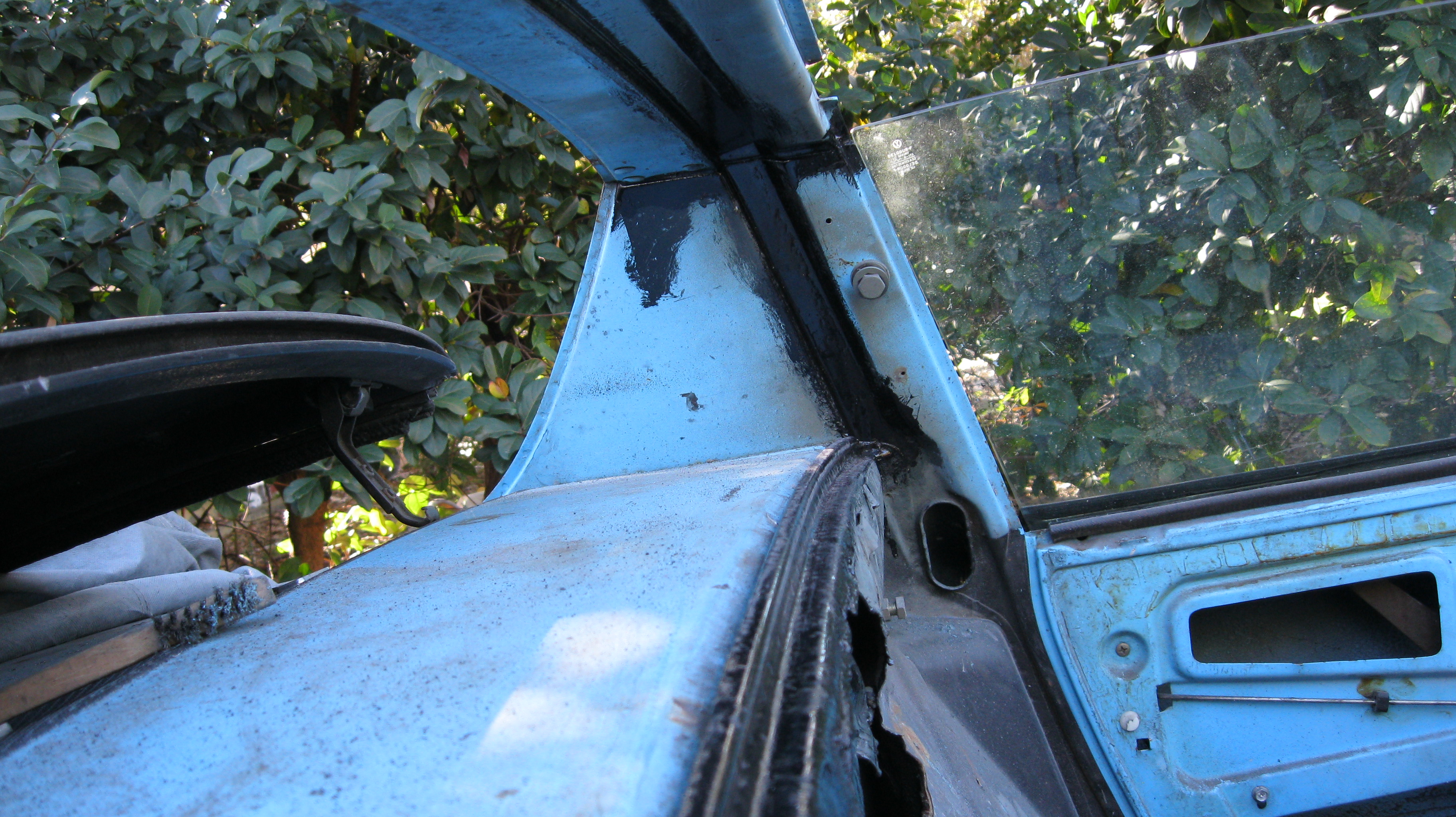 And finally, the front windshield channel. I discovered some rust here too. Glad I got to it when I did. I'm not sure how I'm going to try and seal the other side yet. But this POR should stop anymore rust from appearing on the outside. Still having fisheye problems. I'm starting to think I just got a bad batch (I have heard this does happen from time to time).