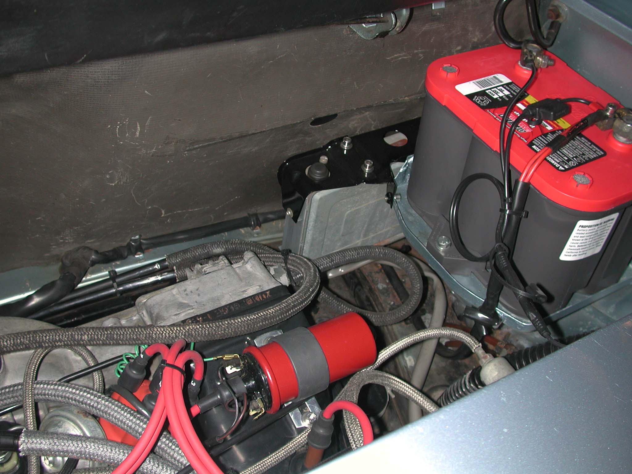 Can someone post a good pic of the mount on a late (75-76)computer mount?Mines sitting in the hell hole,flapping about.Its got some kind of bracketry on there but doesnt look complete to me... (IMG:style_emoticons/default/dry.gif) They mount on the battery tray. I wish I had a pic for you but mine was kaput when I got it. Had to redo mine. |