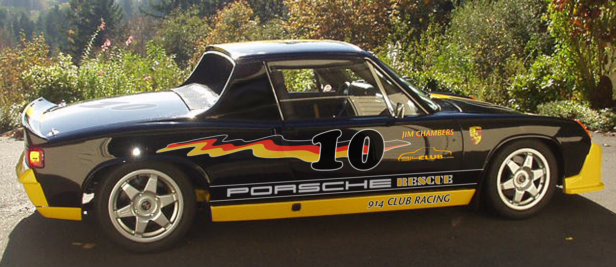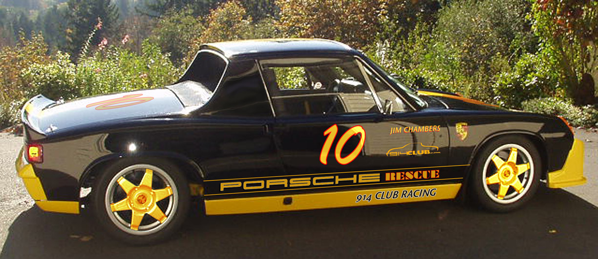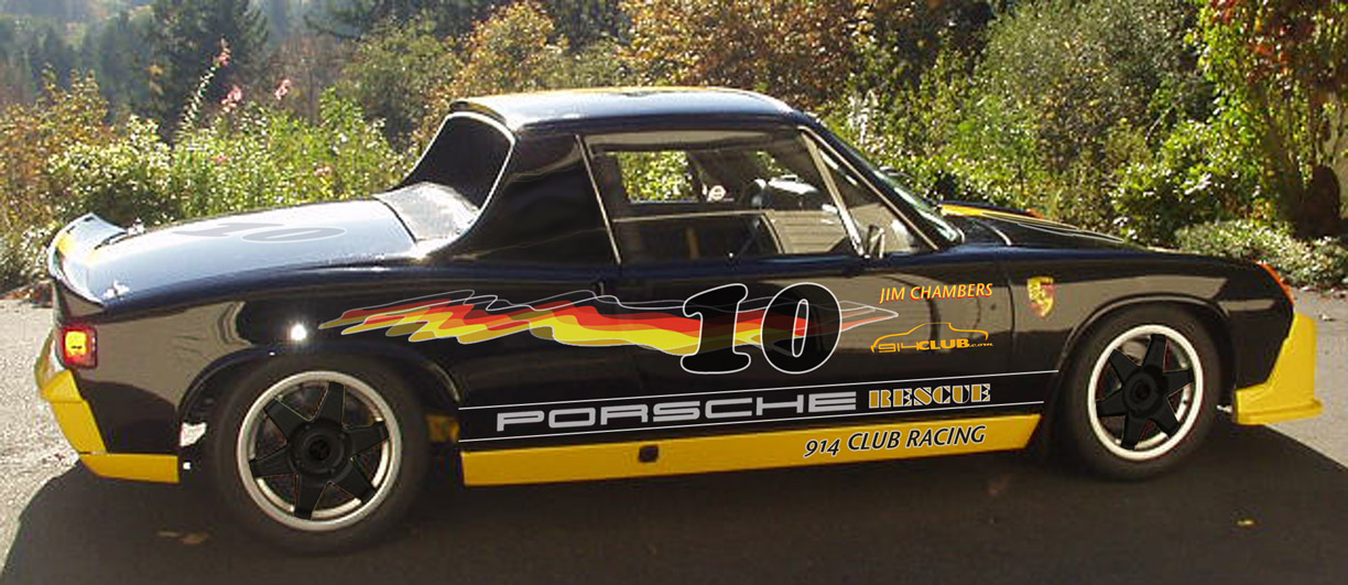 1. Carry-over silver wheels. 2. Web name becomes more important in silver,and yellow (Porsche Rescue) graphics,and silver stripes top,and bottom to relate to the wheels. 3. Solid yellow number 10. 4. Yellow 914 club.com decal on door. Attached thumbnail(s)