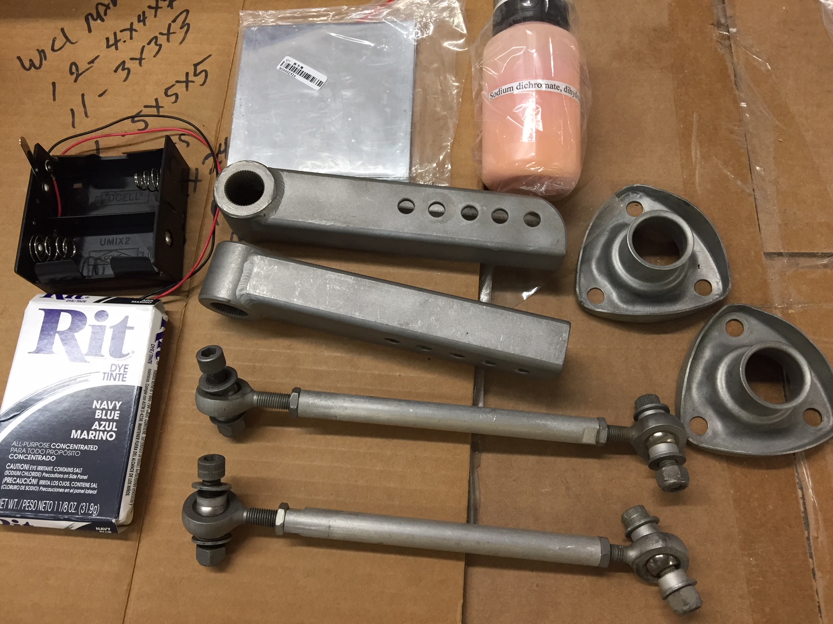 Do-it-yourself zinc, Cad plate and Blue Anodizing for the aluminum for my V8 front sway bar. Still need the battery acid and 2 d batteries for my set up. Waiting for Amazon to ring my door bell. Bob B |