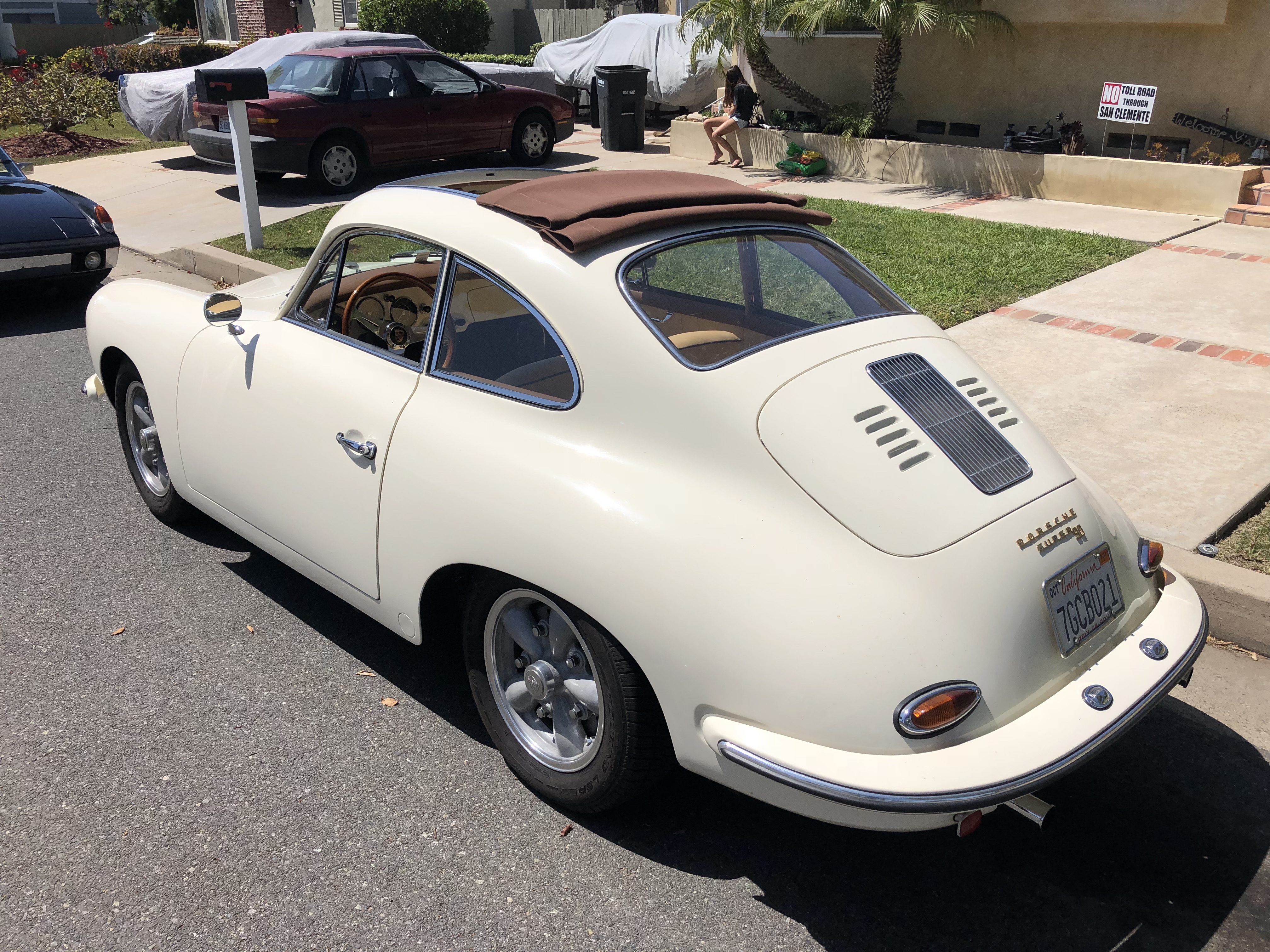 I stopped by my friend Trevor's house (our local welder) because he had this '60 coupe out front. He did the sunroof install for a client, the car has a lot of "nuances," parts from different era Porsches in the mix.