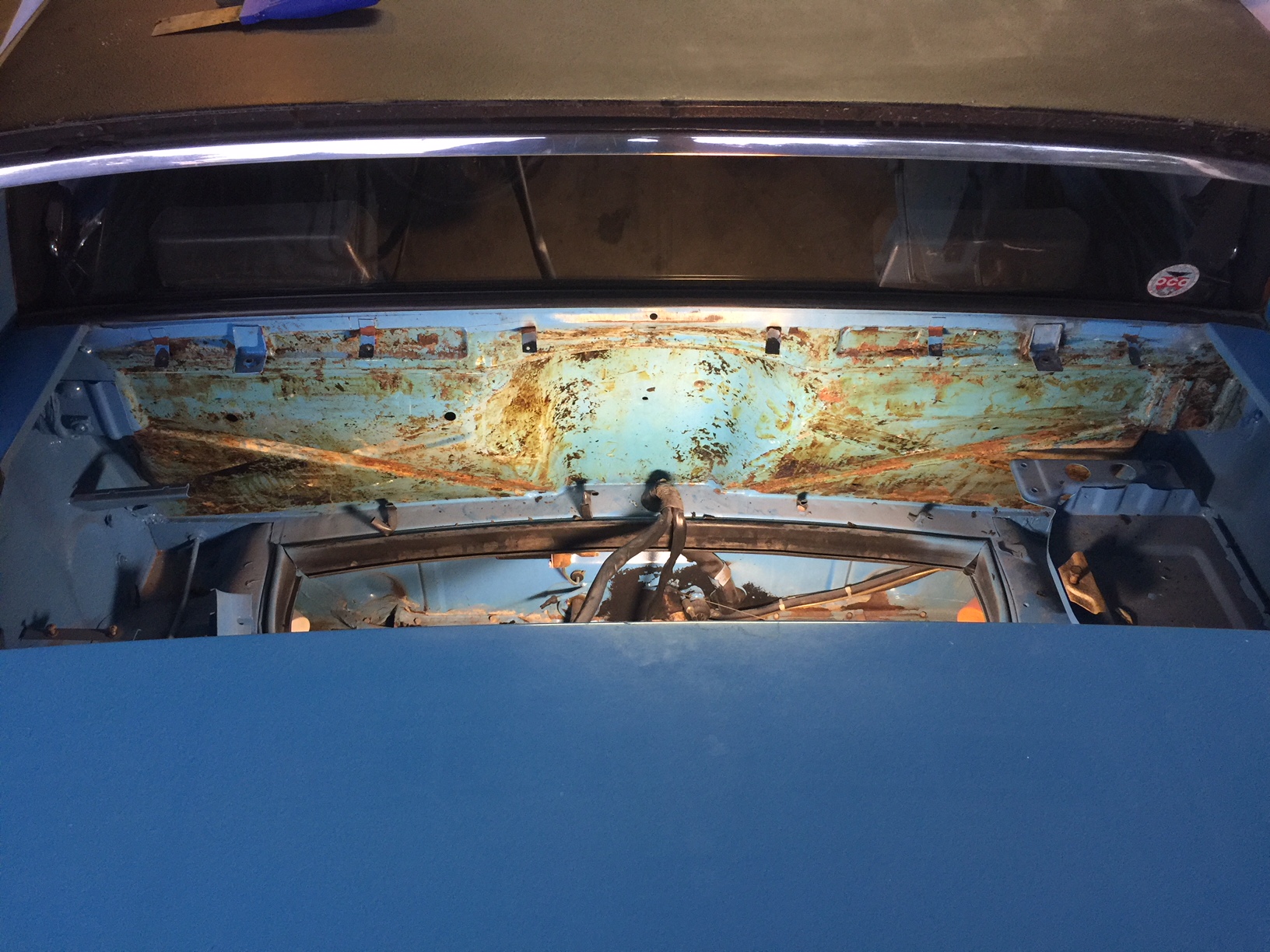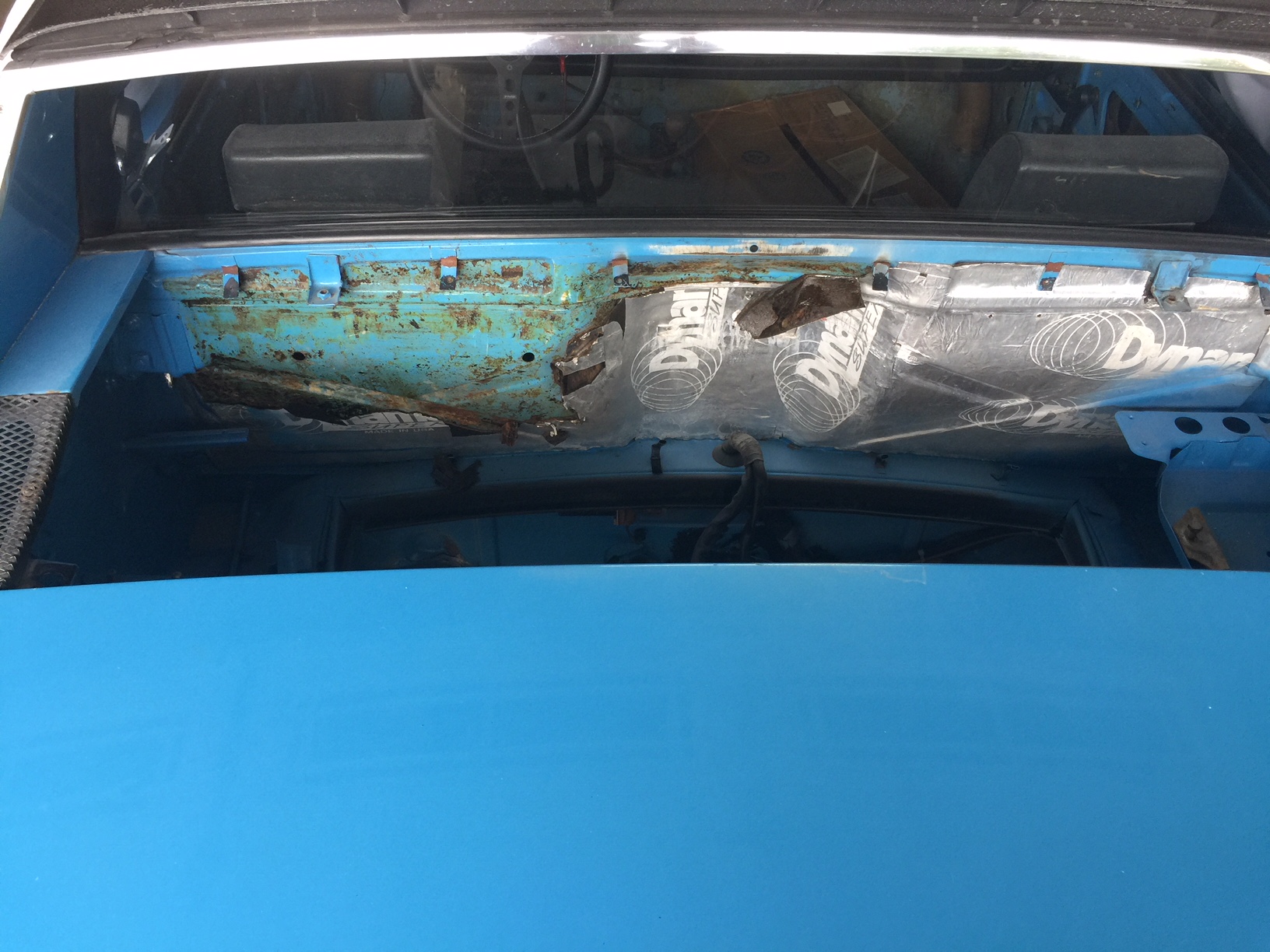 I started work on the engine bay clean-up. First was the removal of the Dynamat stuck to the firewall. A heat gun, scraper, and two hours later, it is off. What a pain in the butt. I'm glad I removed it as the P.O. applied it over surface rust. Next up is to take it to metal, prime and paint.