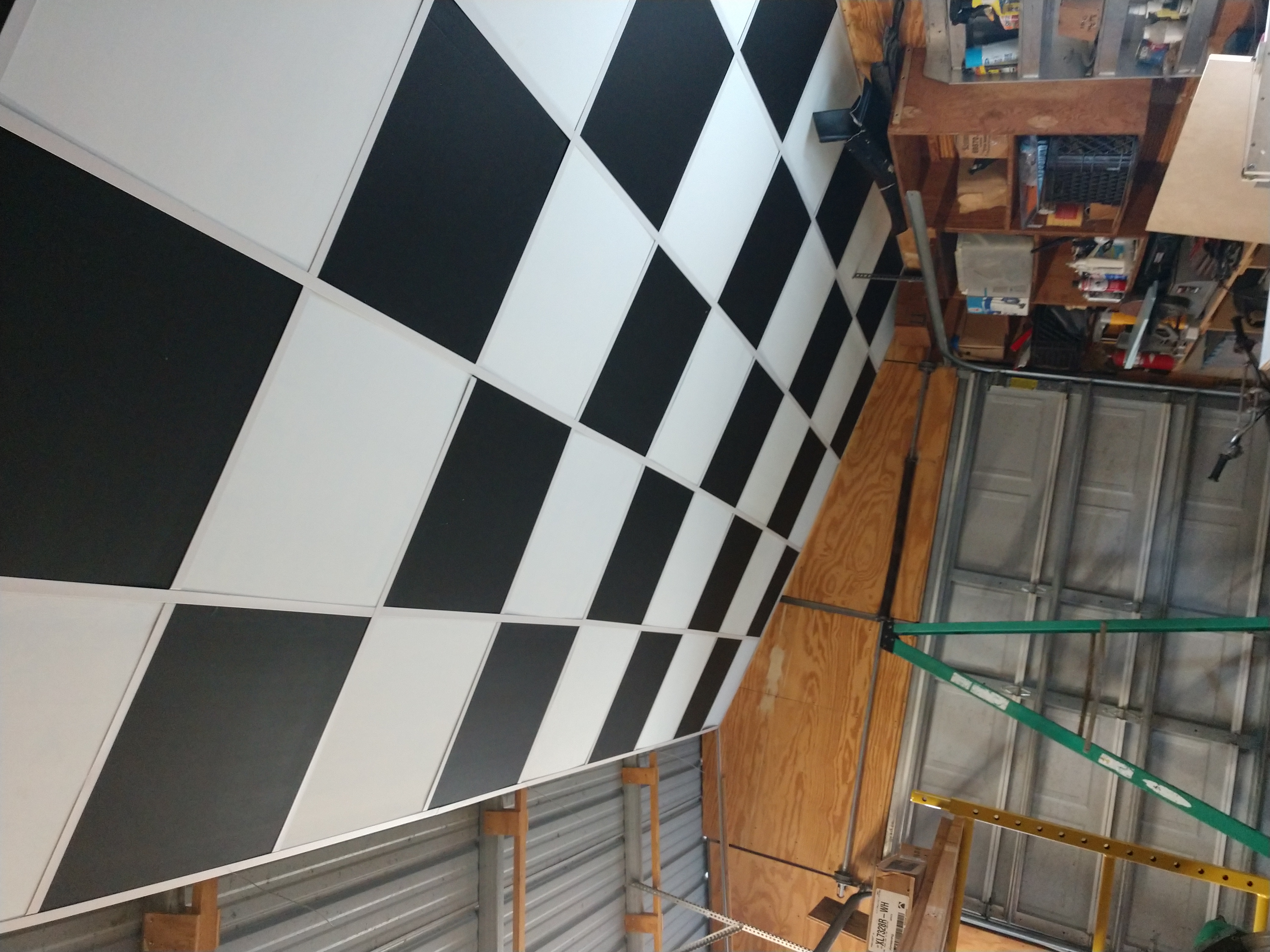 Finished half of her ceiling. I think Mark wanted to see this. It's really shocking in living color. I took the picture right side up. Get the other side done and I can put in A/C. Just don't start the car in the garage if you want the white to stay white (IMG:style_emoticons/default/sad.gif) |
