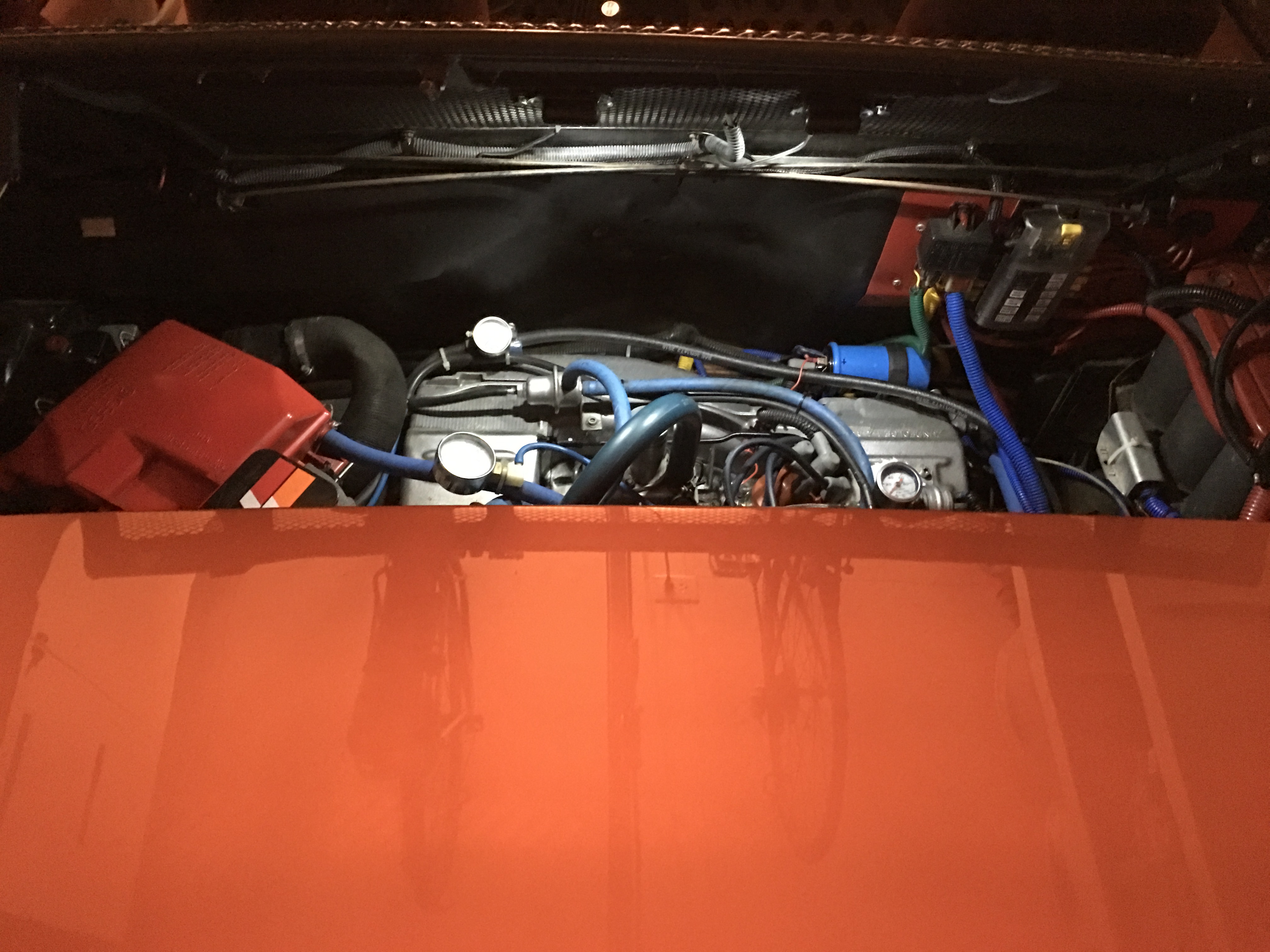 Installed two LED lights on engine lid. The lights are LED license plate lights. They attach to the engine lid by rare-earth magnets and can be moved. The lights ground is activated by a tilt switch attached to the lid. Lights only come on when the lid is raised Nice job. Jim |