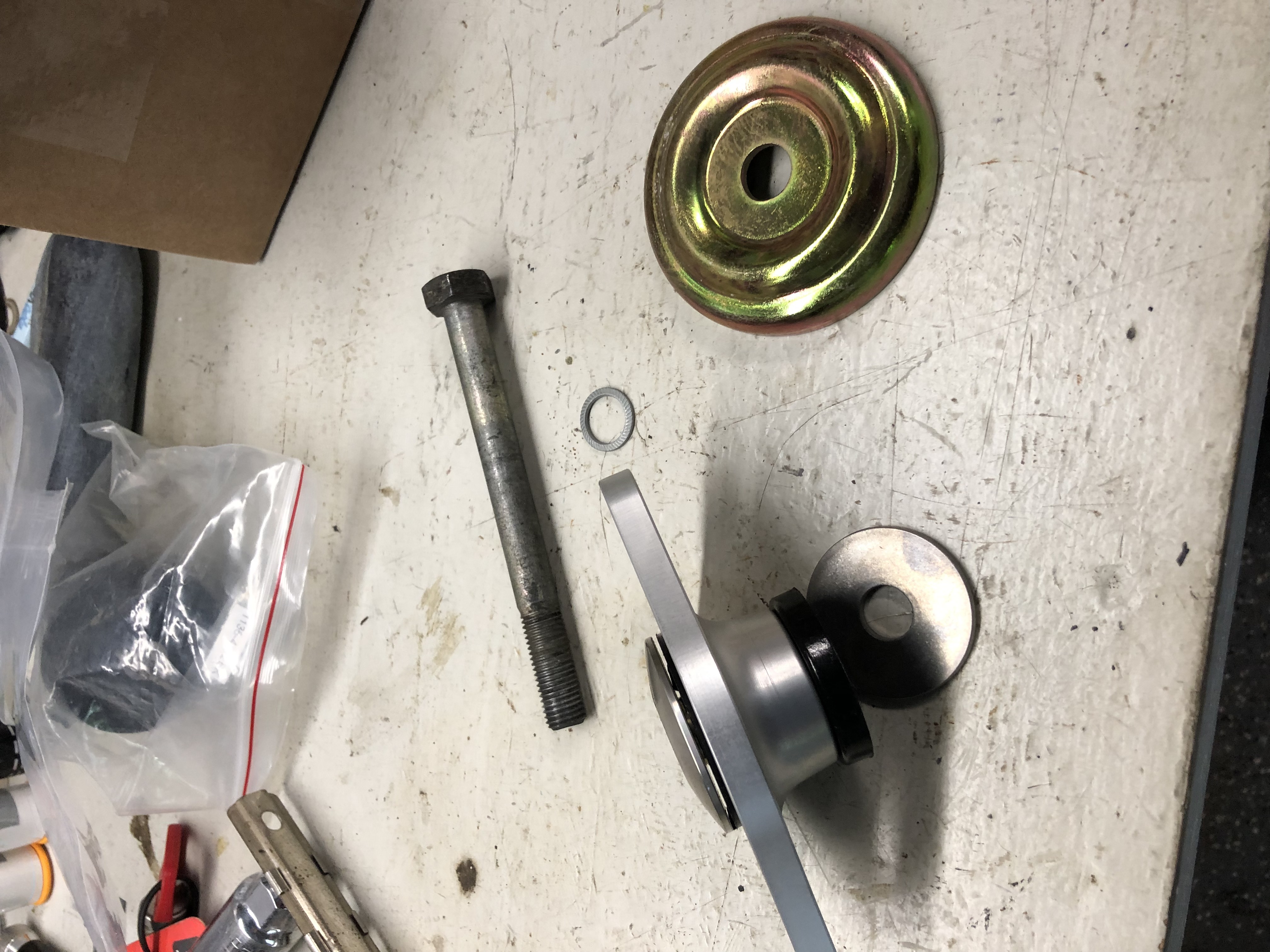 I replaced the solid aluminum/Delrin PatrickMS sourced transmission mounts with Wevo mounts. I chose the softer black pillows. I think the vibration through the chassis from the hard mounts was too much for me. I used the cup washers under the mounts and on top of the transmission ears.