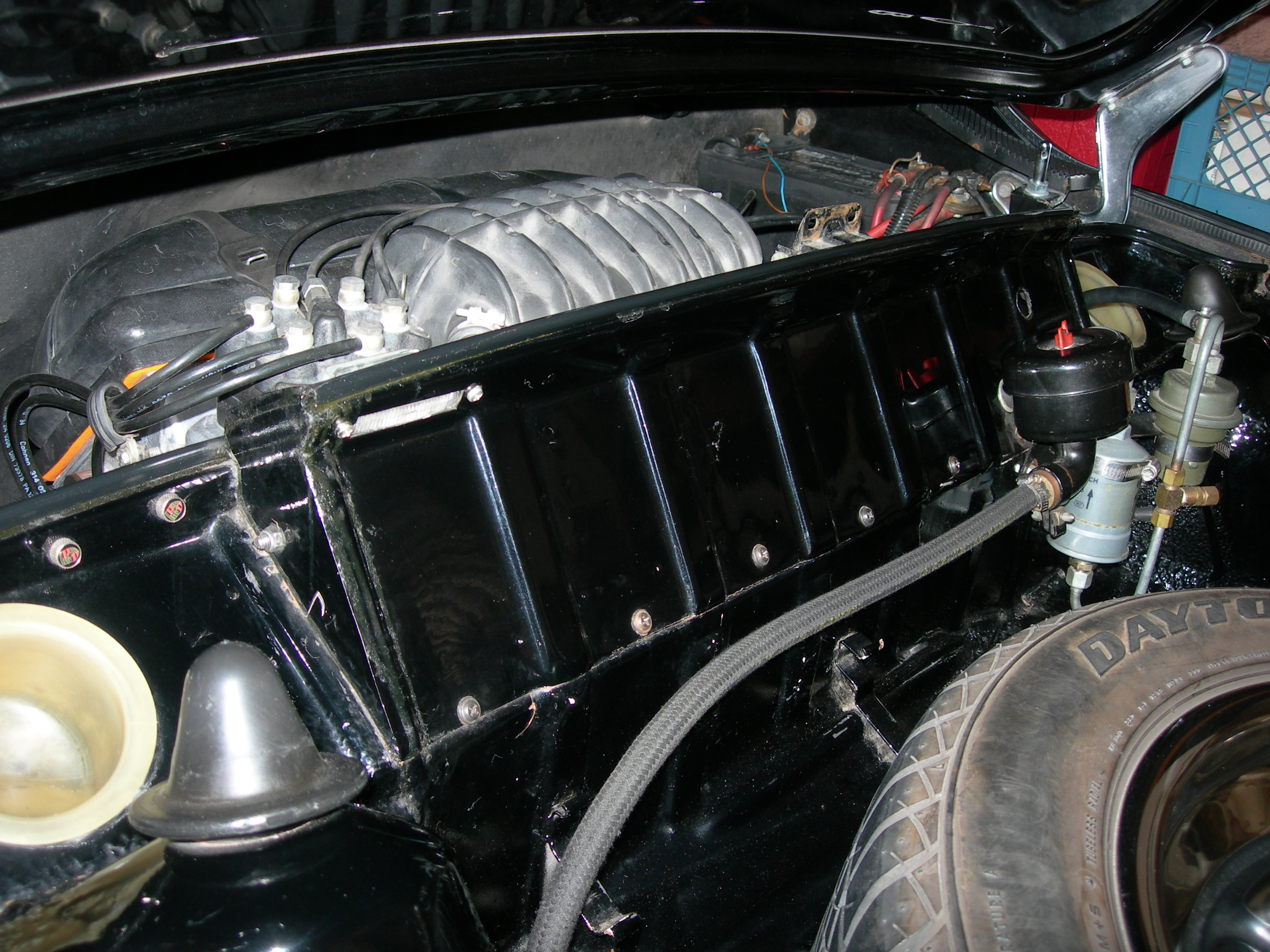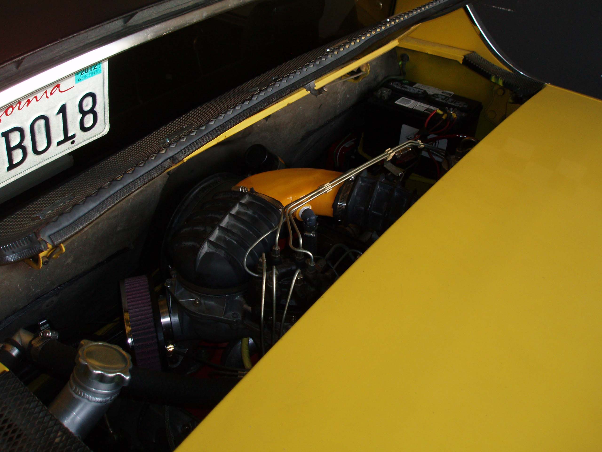 not much bling for all that work, but it is very clean now. (IMG:style_emoticons/default/cheer.gif) What tips/tricks did you use to get the CIS to fit in your engine bay? Looks great! It was a very easy trick. (IMG:style_emoticons/default/happy11.gif) Just buy a well sorted car that somebody else put together with skill, love and money. (you can check my blog for more details about Elvira.) My guess is he cut the lid latch out or moved it and maybe cut the trunk! Give that man a cigar. (IMG:style_emoticons/default/first.gif) The latch was moved. The PO had a setup with a motorcycle cable that did not work reliably. (IMG:style_emoticons/default/idea.gif) I solved the problem with hood pins. The trunk was cut and reshaped. (IMG:style_emoticons/default/sawzall-smiley.gif) A stock targa top does not fit. Attached thumbnail(s) |