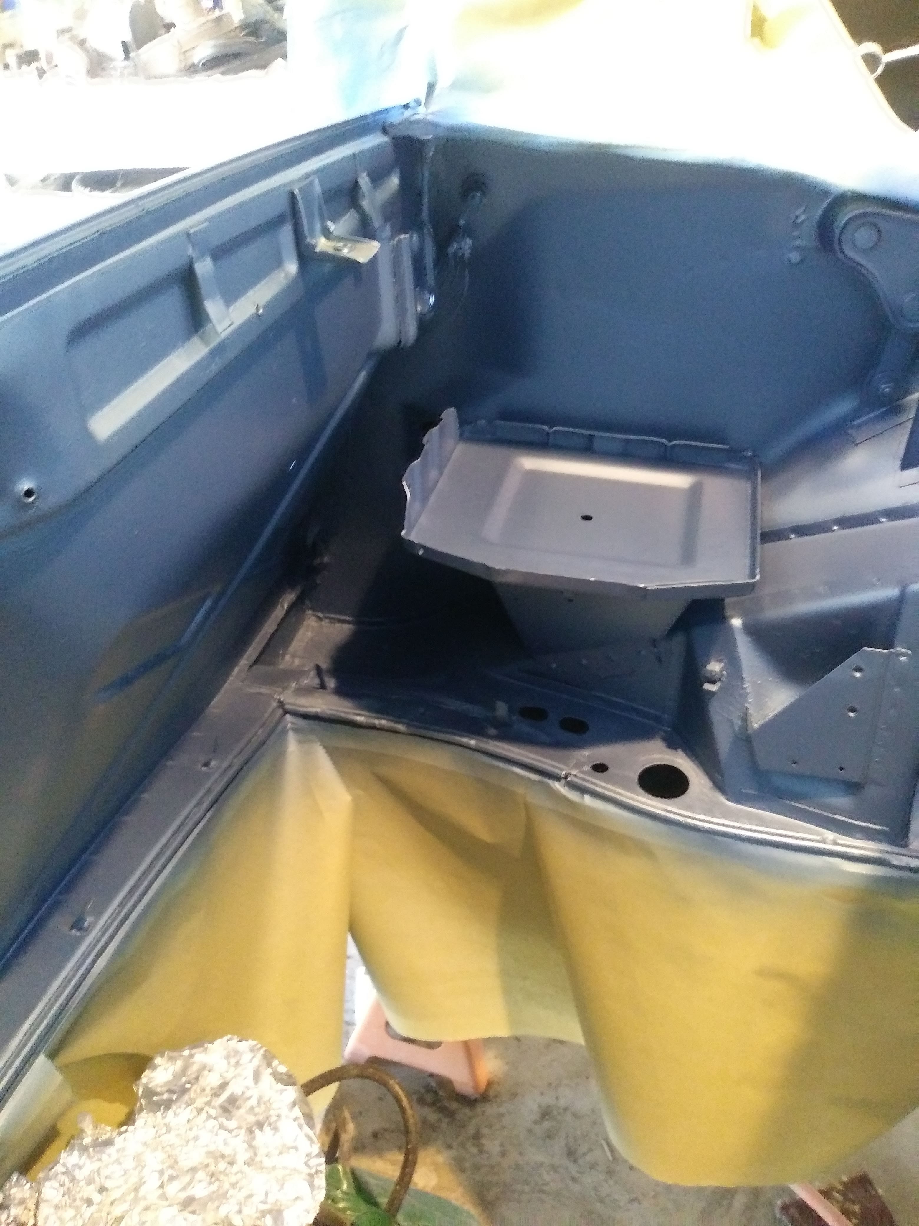 Painted the engine bay today on the '75. We're going to take it off of the jack stands for the first time in 4 years and then It goes to the paint shop tomorrow. Awesome.
