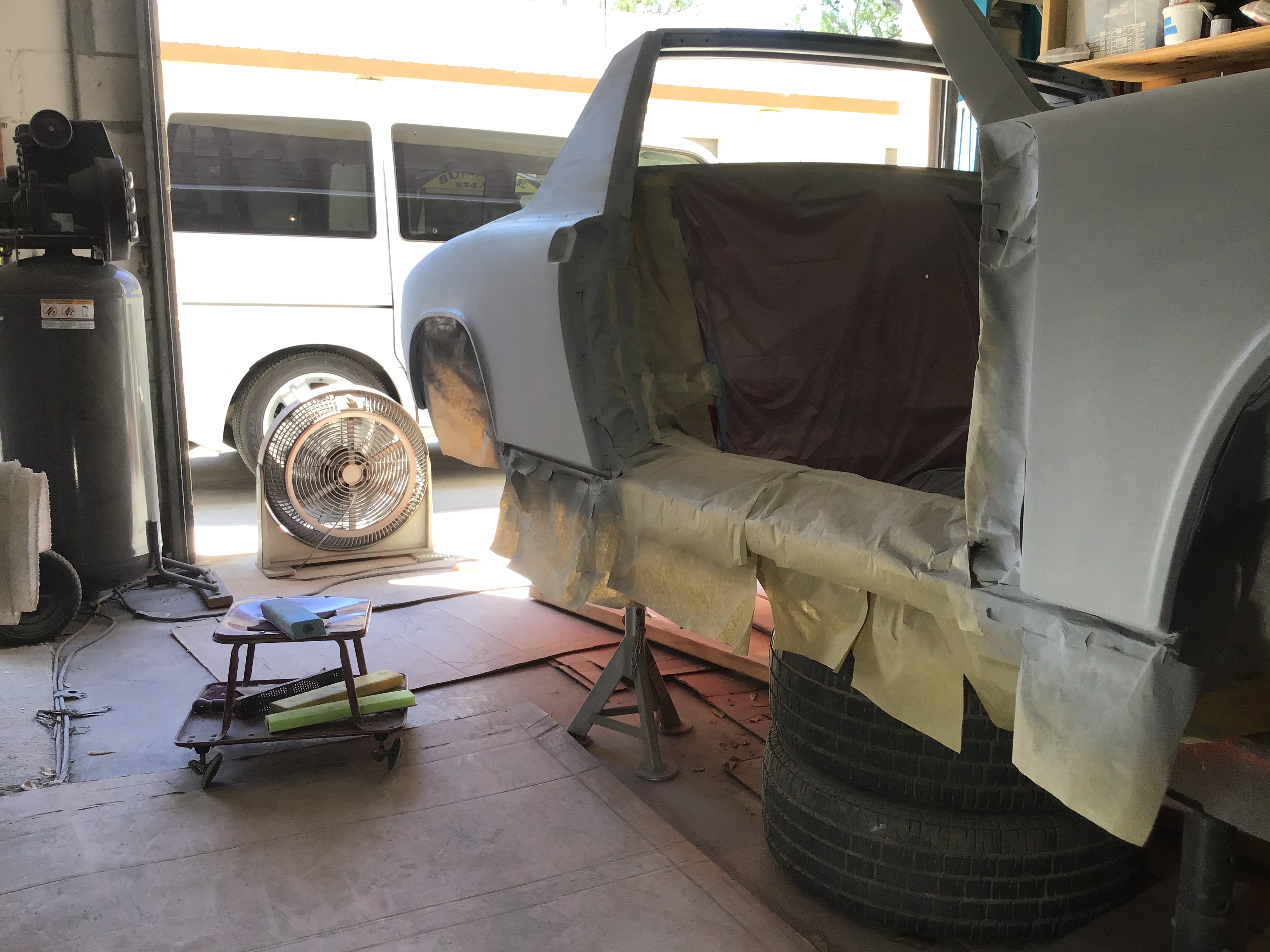 It's as lumpy as a bag of walnuts but at least there's no rust. Will look nice when completed and it has to be perfect because the car is black...... |
