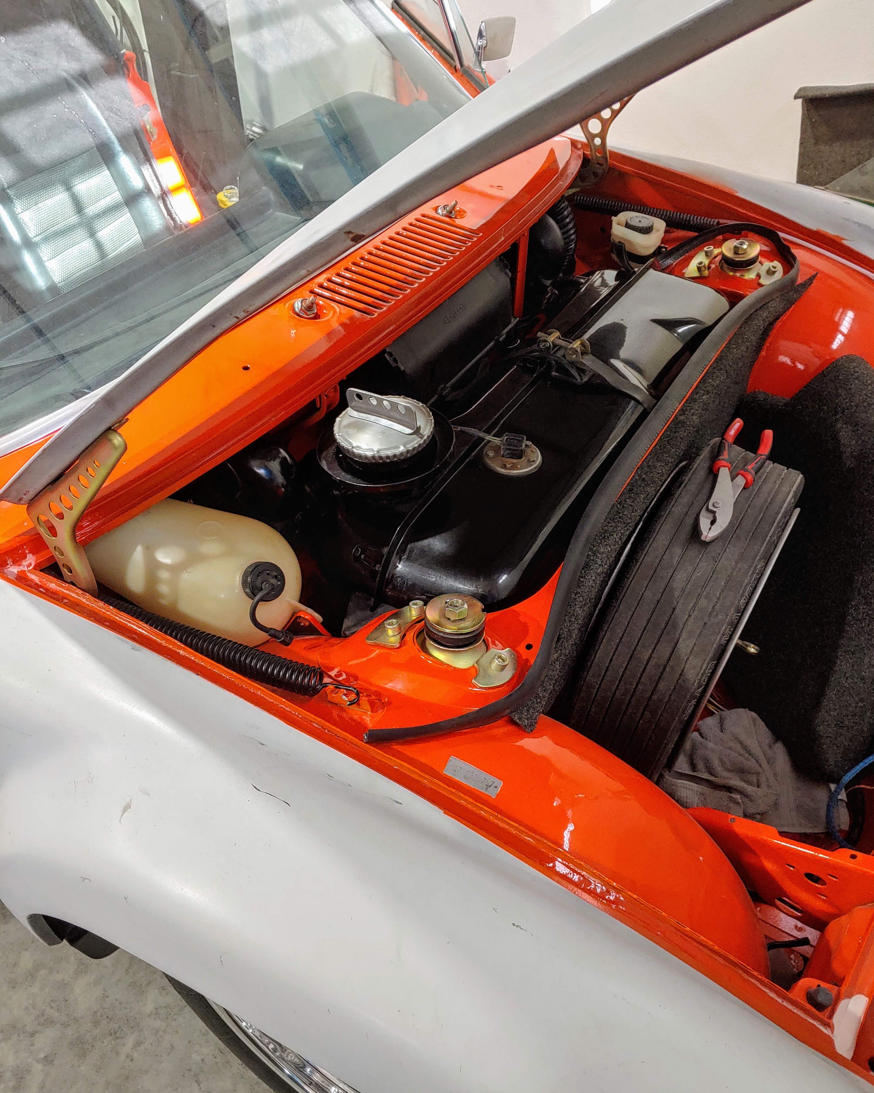 1. Opened the box from 914rubber to check the visor. Beautiful piece! 2. Pull the 914 from the corner using the 4 wheel dollies. 3. Try fitting the triad that I bought from a member 4. Removed old clutch cable, trottle cable and speedo cable 5. Removed the 3 pieces engine bay/tin seal 6. Test fit the dual carb velocity stock ![]() ![]() ![]() ![]() ![]() ![]() |
