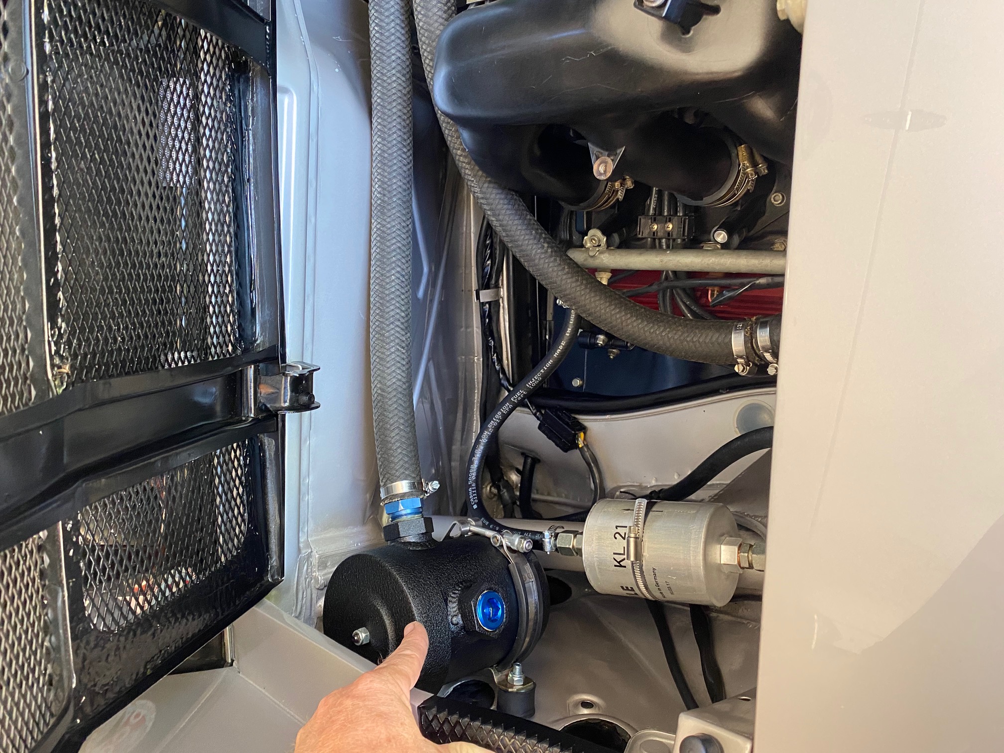 I spend ~6 hours cleaning oil out of the engine bay, the puke tank in the "plumbing" decided to spit maybe ~2 quarts out into the left side of the engine, spilling down thru the DS helll hole and onto the headers. Very strange, after clean up, engine starts runs makes good pressure and I can't find any leaks or anything out of the ordinary. $hit day though when I thought I was going on a nice morning run with the fellow 914world group Oil appear to have poured out of this breather: |