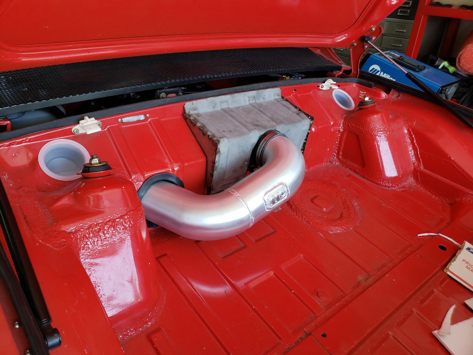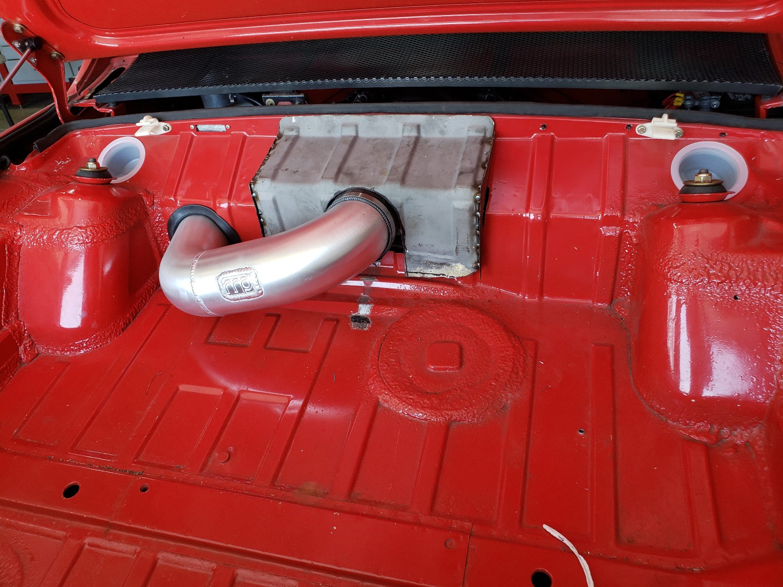 Thank you to Rich @914werke who came through again by sending me some sheetmetal so I can fabricate throttle body cover for my V8 car. A few more hours of trimming and painting left...here it is mocked up. Also added expanded sheet metal to fender vents...paint later.