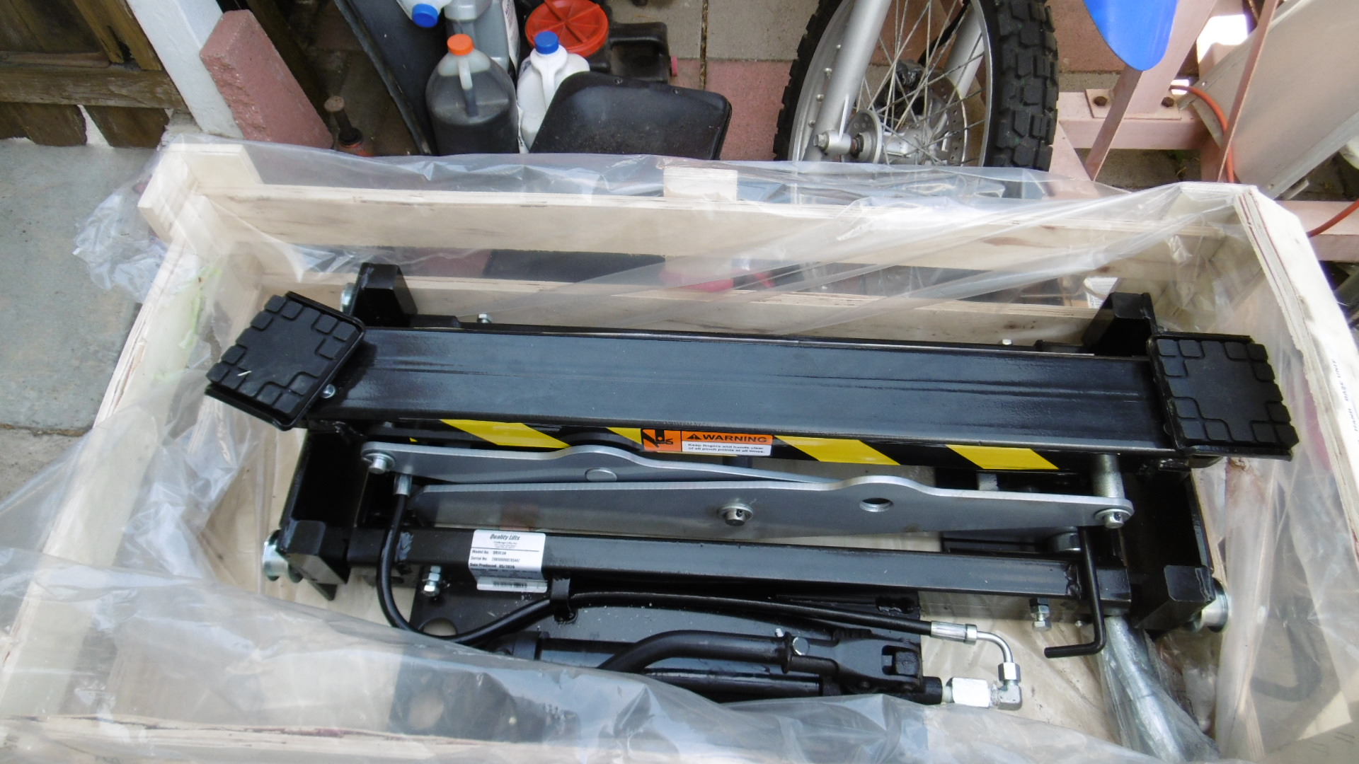 This behemoth of a rolling lift jack (350 lbs.) was delivered today.