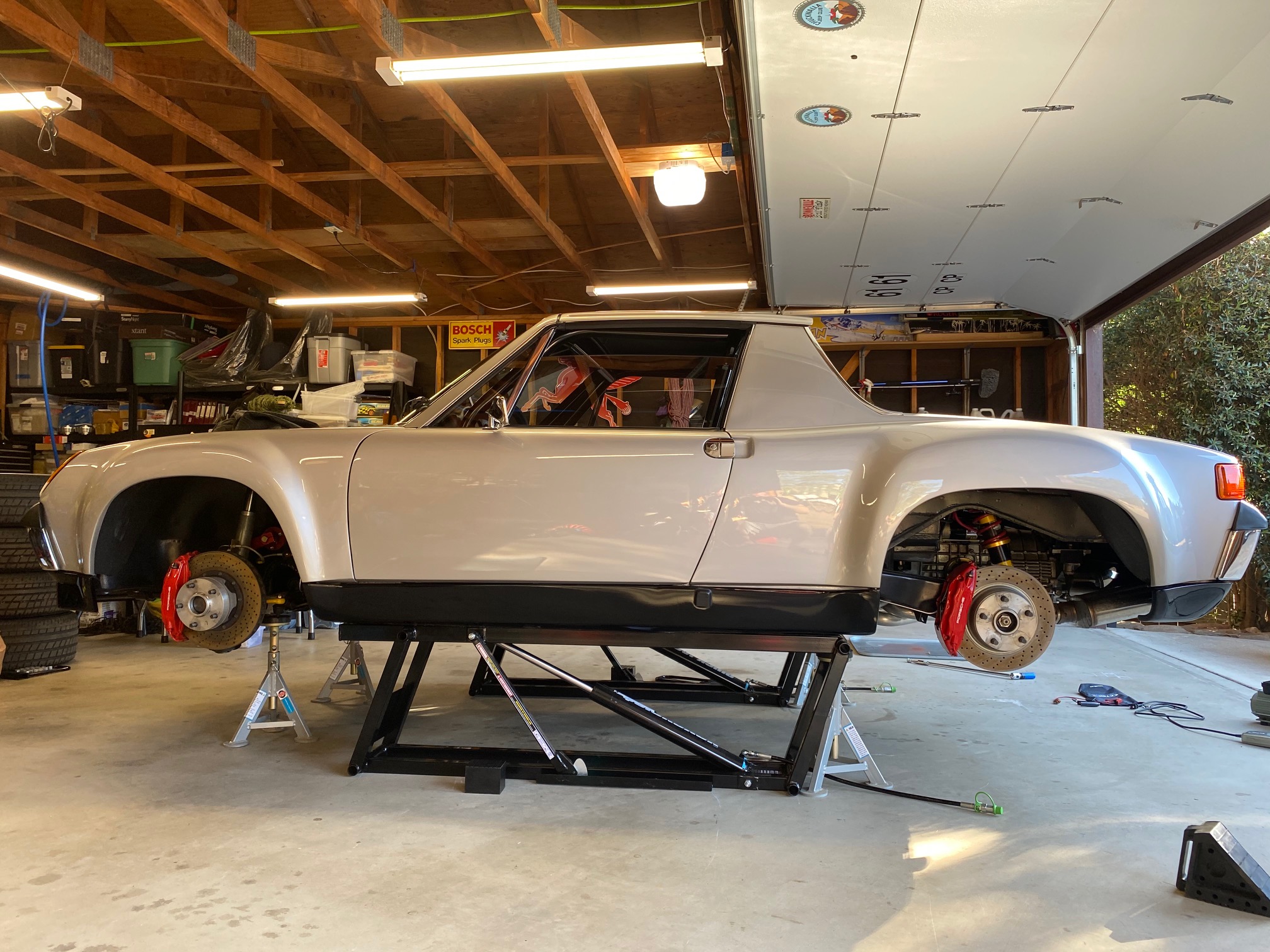 Love my rolling jacks. Have 2 on the 4 post lift so you can have all four wheels off. Wish I had a 2 post for working on the cars but these work pretty well.