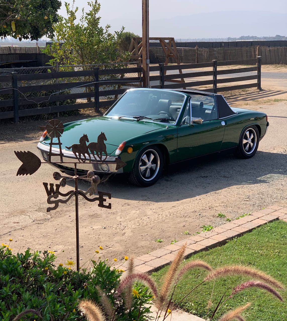(IMG:style_emoticons/default/driving.gif) Took it for a nice little ride to Salinas to look at a horse trailer with my cousin. 200 mile round trip and the car ran and rode perfectly. My cousin, who is a total gear-head, car-freak like me, loved it. Here it is parked in the driveway where we went. It just looked pretty sitting there so I snapped a pic. (IMG:style_emoticons/default/beerchug.gif)