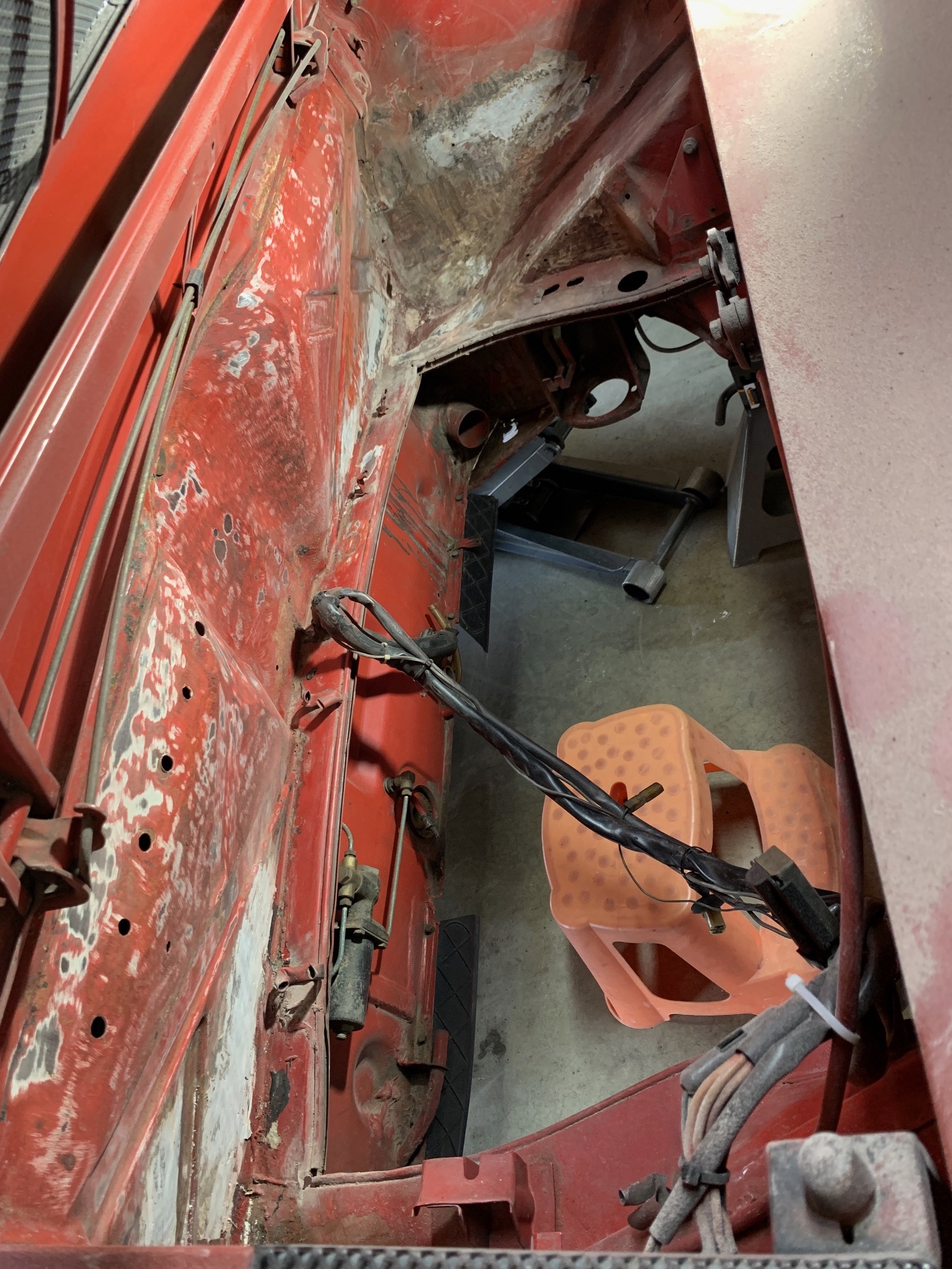 Technically a day or so ago but ditched the crossbar throttle linkage for a Tangerine cable setup. No brainer upgrade.. so much smoother and perfect drop to idle. While at it, installed a hand throttle which was a ‘car warming’ gift from @buddyV . Since 58 has no heat, modded the hand throttle to go in the heater position so a rennshift can be installed without having to hack it up.