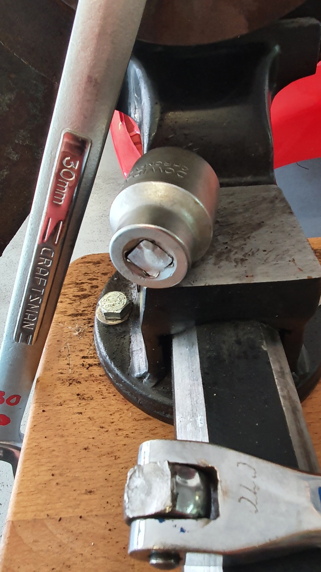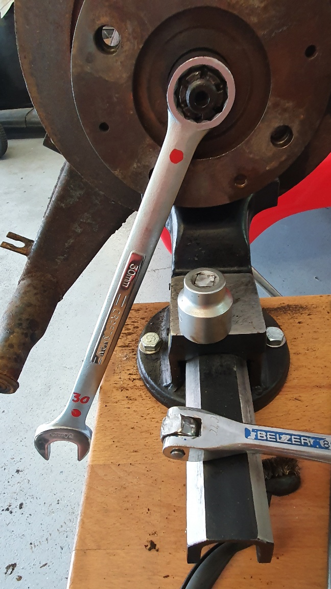 Broke a good German tool today. 1/2 inch breaker-bar, but finally got the 30MM rear hub nut off. Heat cycles, liquid wrench and my impact gun did the trick. I won today!