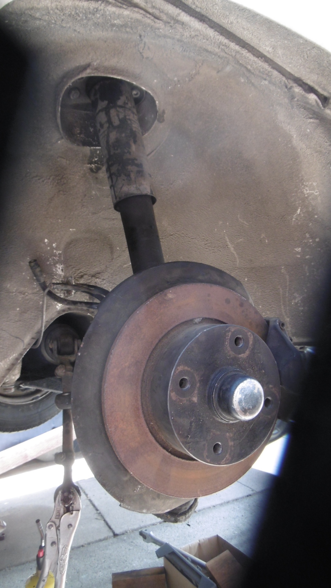 Finally got the replacement right strut assembly installed on HOWARD. I was having a hard time getting the insert's stem pushed up through the upper mount to get the washers and nut started.