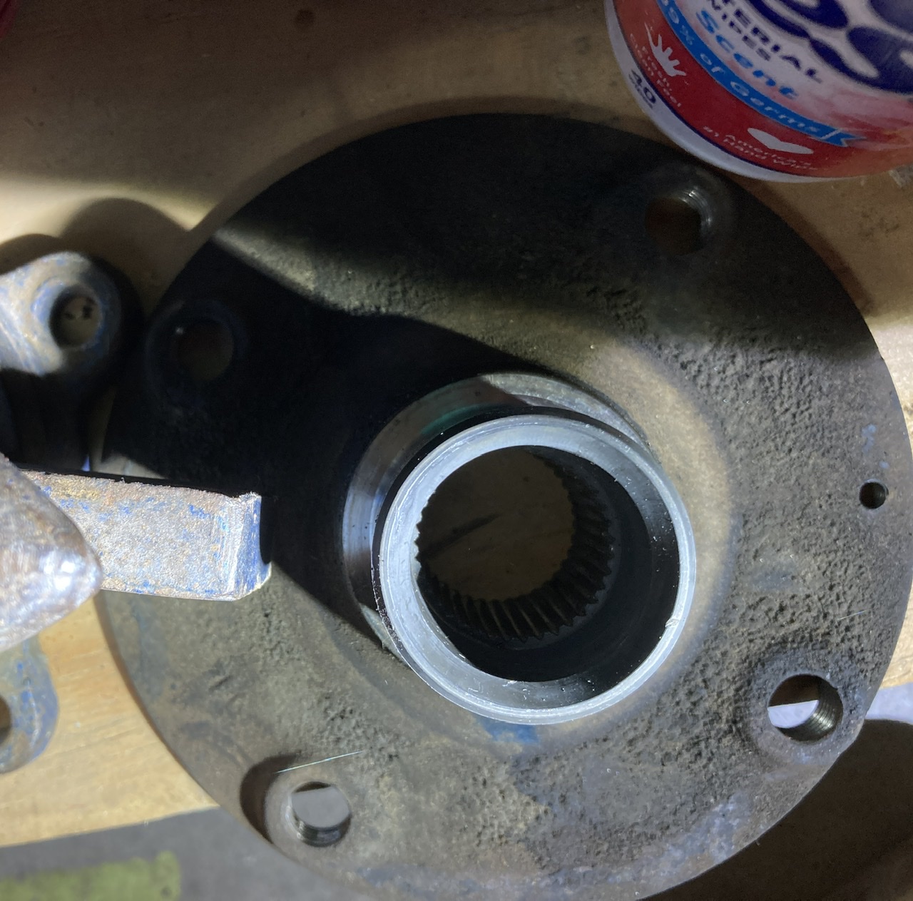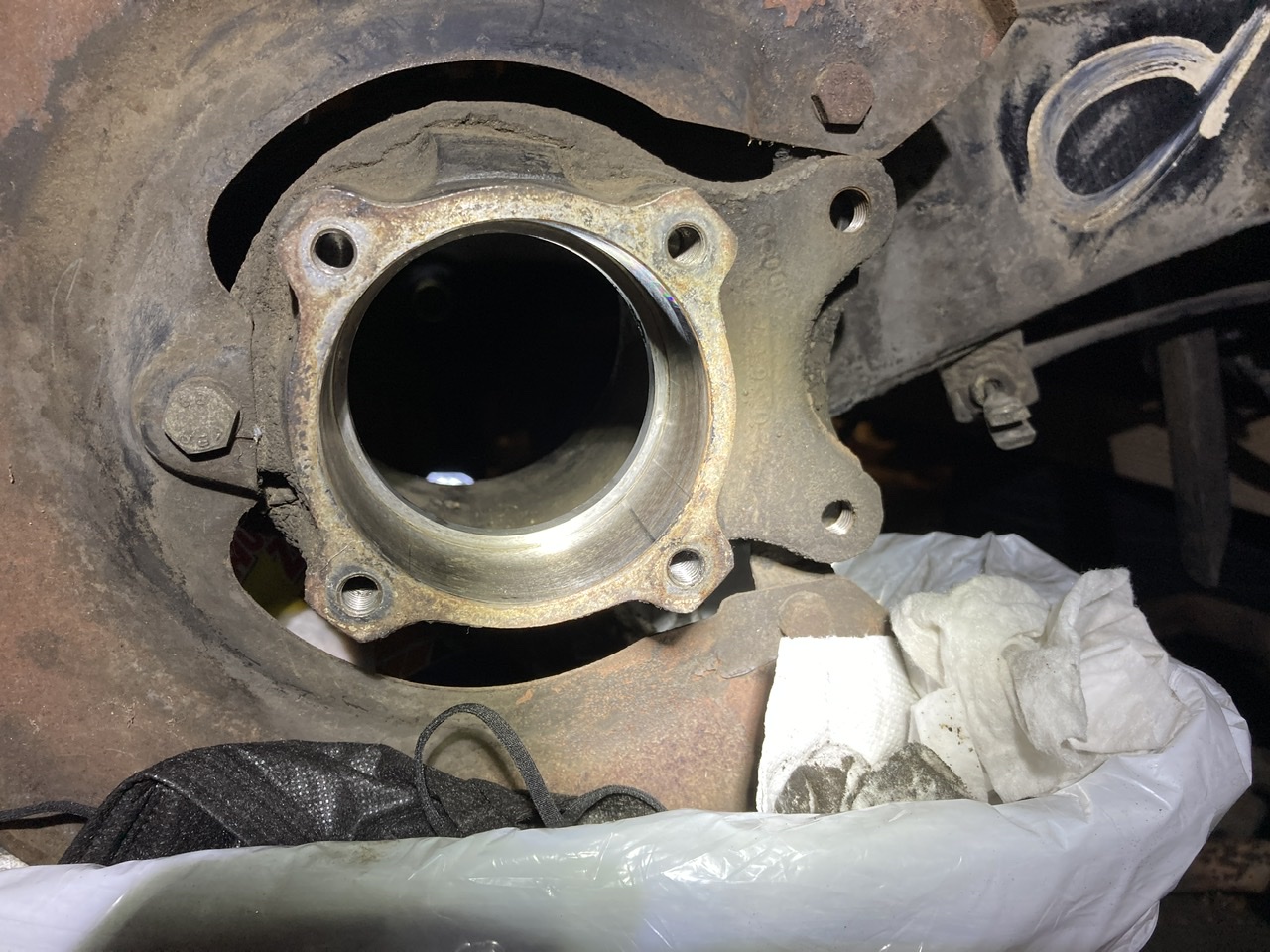 Had to use parts and pieces from an aluminum seal installation kit and front wheel bearing removal/installation kit. Hoping to be able to successfully install some pre-2000 bearings soon, after I get the other side off tomorrow. I was careful as usual and heeded Bruce Stone’s warning about marring the hub - the knick was there from a previous owner ( extensive service records from 1989 to 2001). |