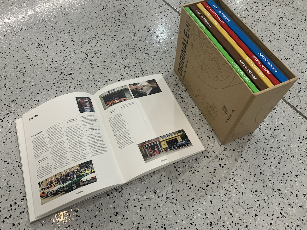 And opened box of the set of Originale books from Porsche Classic. Had never opened the individual ones I got because I didn't want to wreck the paper wrapping... (yeah, I know it's a sickness). Great articles... Oh yeah, and took the '73 for a ride early before it really heated up. |