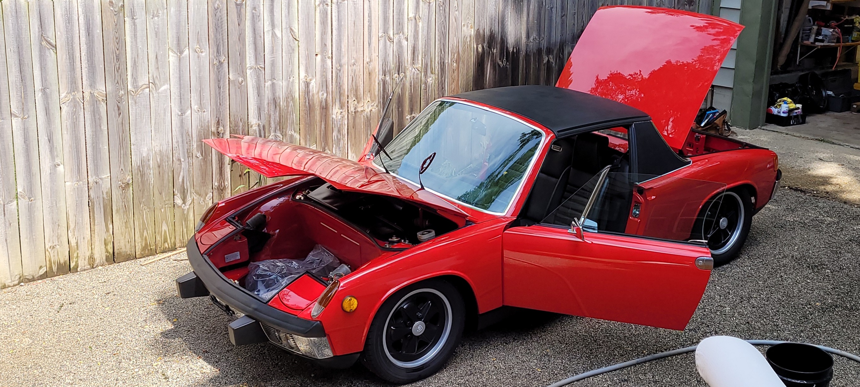 i just wanted to start a thread to see what you guys do day to day on your cars. i'll start, about a month ago, i pulled my engine and trans to put in a new clutch. had the flywheel lightened and resurfaced. but what i didnt know is that i had to shim the little ball that the clutch arm rides on, after a resurfacing. so guess what i did today? yup, pulled the trans and put an extra washer under the ball. you have to goop up both washers to get it to seal because the threaded hole goes all the way thru to the inside of the trans. i also replaced the plastic cup that the ball rides in. the throwout bearing and its little plastic blocks were fine so i buttoned every thing back up. 5 hours total. i think this has been the cheapest repair yet on my car. $2.75 for the little plastic cup. what did you do to your 914 today? Took a bath? Getting some air..... |