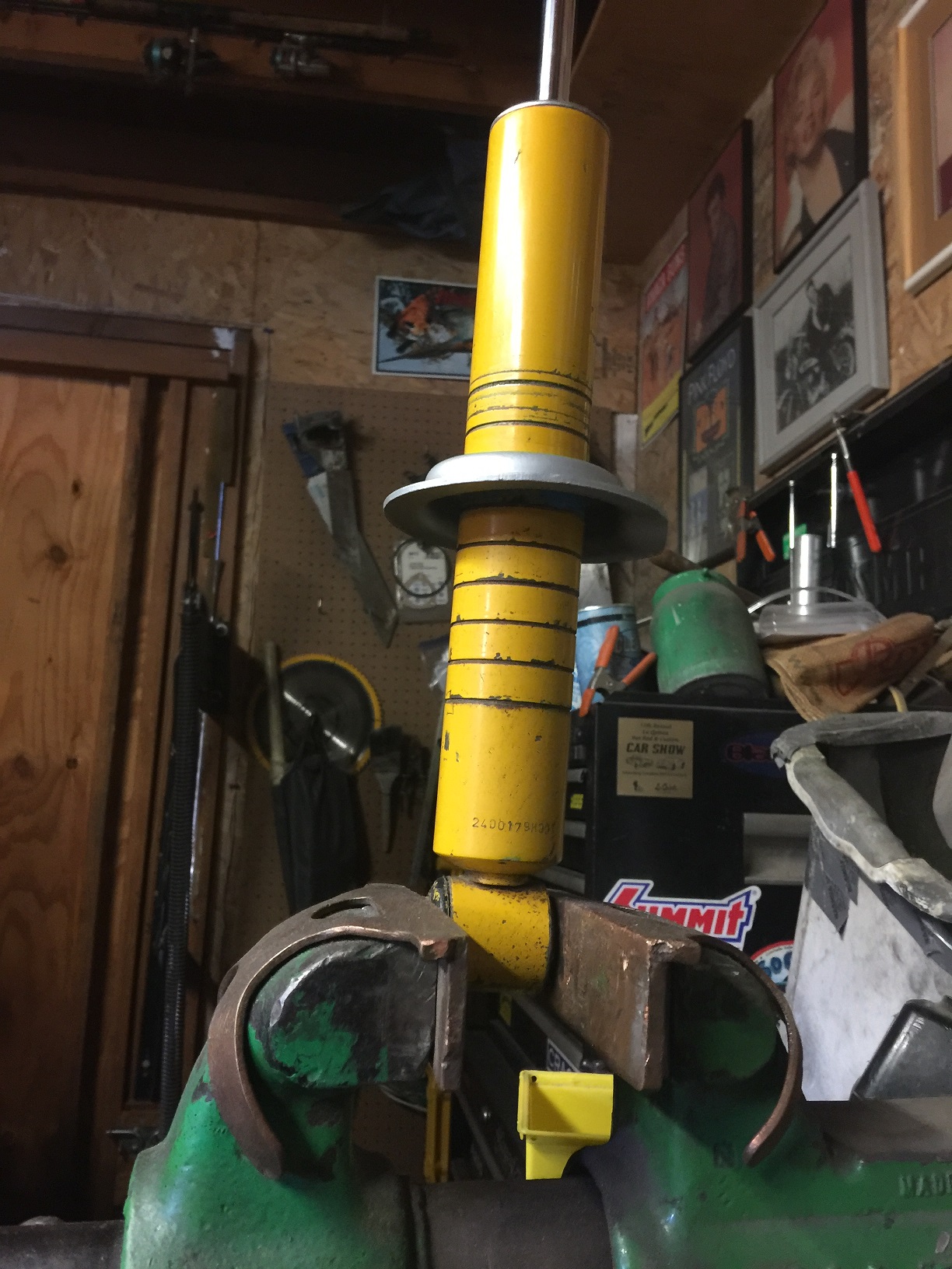 I got a set of used shocks, thanks @Literati914 , good shape but needed some cleaning up. Cleaners wouldn't even do it, so I sanded the paint with 1200 grit, used high gloss stick compound and the polishing machine. Still has chips I'll tough up but it's shiny. The peds needed a new coating, so I used exhaust aluminized silver paint, baked at 225* for 15 minutes. Ends up like powder coat. One step closer (IMG:style_emoticons/default/piratenanner.gif)