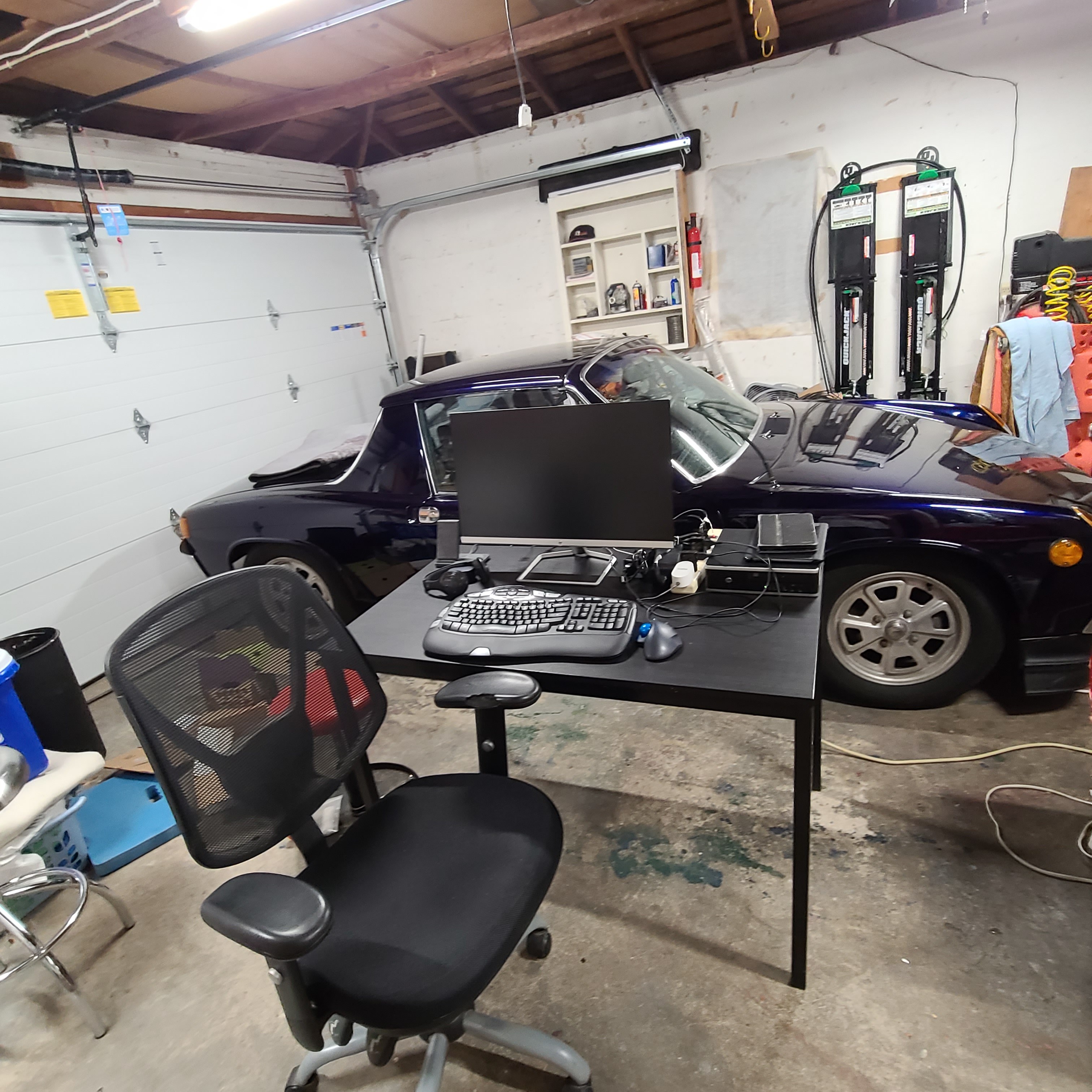 I am working on going back to the office once a week. So drove from home office to corporate office today, literally. My home office is getting new floors and so my current home office is the garage next to my 914. The garage s a little chilly but not bad. The drive to & from work was pretty cold, I have a header and no heat. And I learned the headlight motors don't work right now so I got to stop and crank them up by hand, I'll check them tomorrow. Jim |
