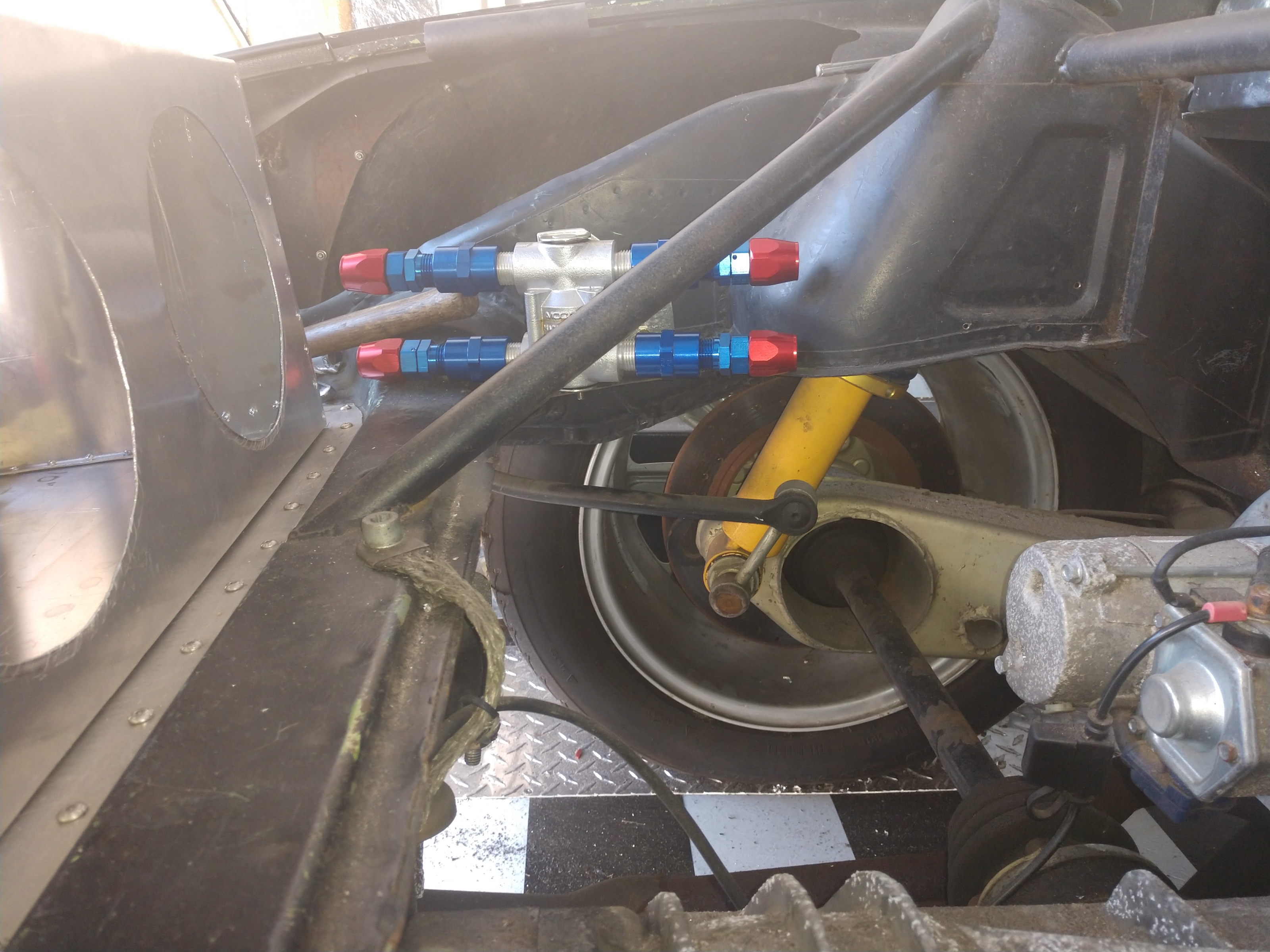I've been doing brakes... rebuilt calipers, new pads, replaced rear braided hoses with fresh rubber. Found some pedal travel (IMG:style_emoticons/default/laugh.gif) but still having trouble with the right front locking up early. Ordered rubber 911 front hoses and noticed the m/c was leaking, so bought that too. PITA job and after a couple hundred presses finally got a firm pedal. Better but still locking up the right front early. At this point hoping it's just the very old tires.