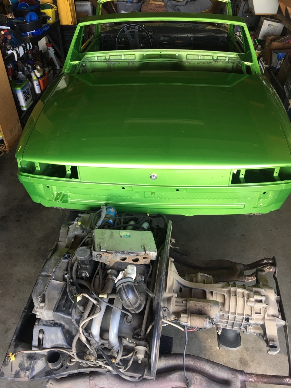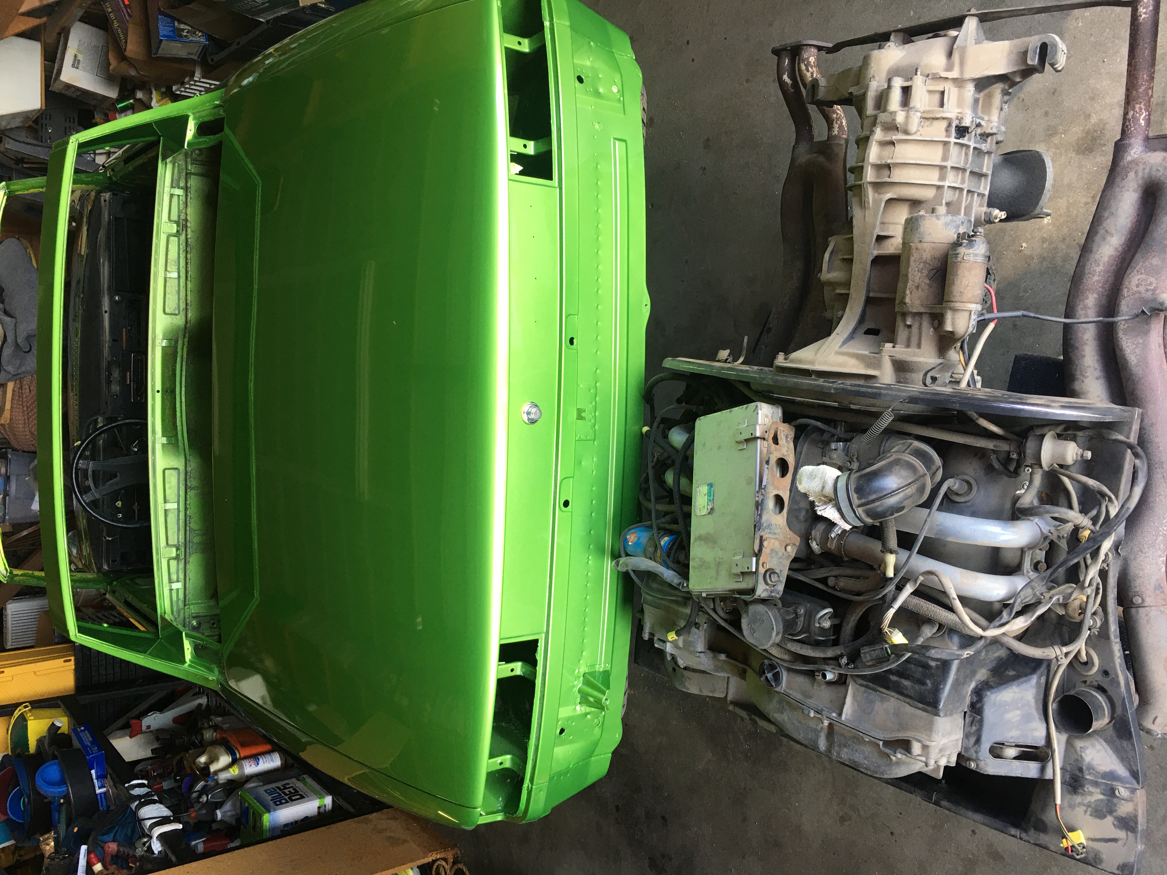 Brought the ‘73 home from the paint shop. Engine/transaxle, glass, gas tank, interior, rockers, etc. out paint job. Now the “fun” to put it all back together begins. (IMG:style_emoticons/default/biggrin.gif) Great color! Is that Viper green? Looks awesome! |