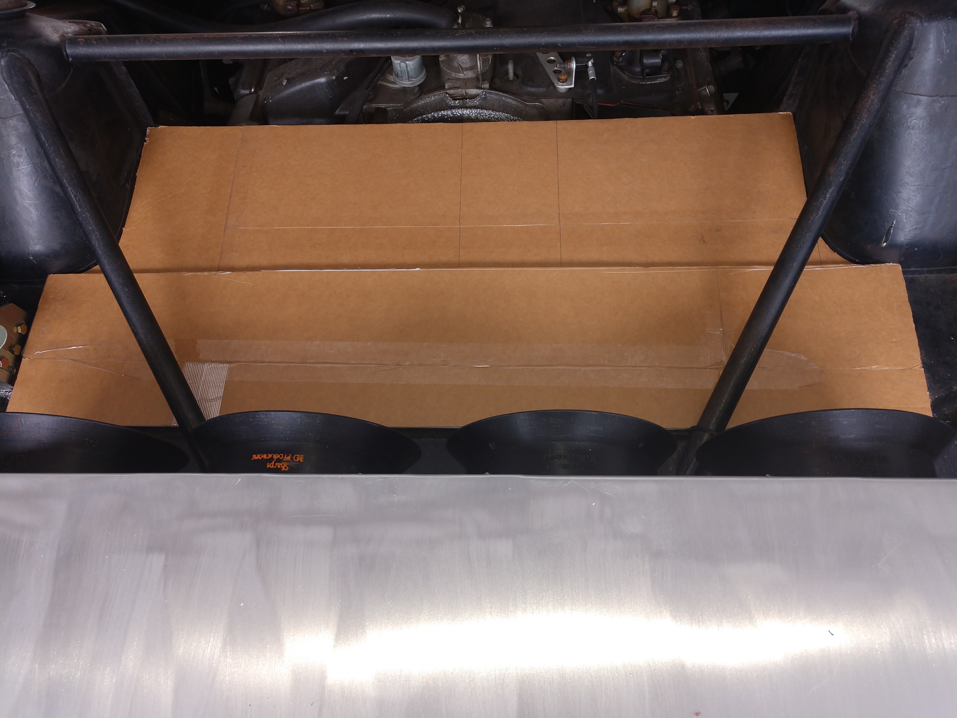Getting ready to cut some more aluminum for the area above the transmission up to the old firewall.
