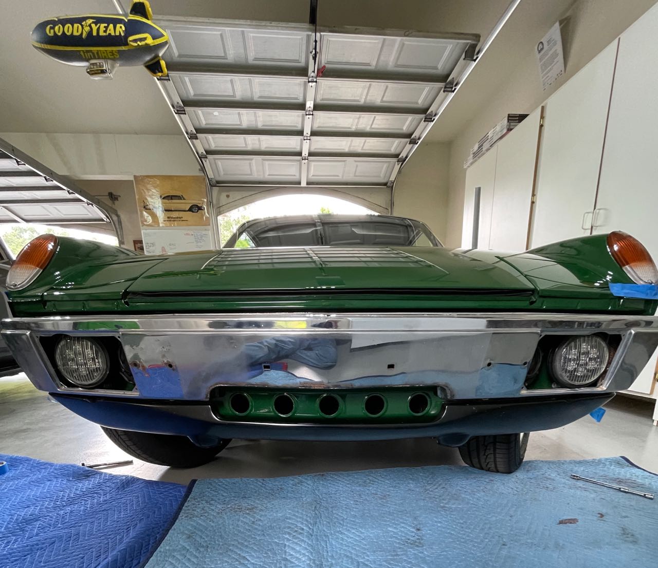 After driving her for about 9K miles I decided to open up the front GT oil cooler opening more like a standard GT opening to allow more air flow. Previously I just had the GT valance opening and the bumper was stock; it blocked about 1/3 of the top of the round body openings I use for air to enter the cooler. In traffic and at slow speeds the temperature would creep to about 200 degrees. So I bit the bullet and sourced another bumper from @DRPHIL914 and had it shipped to Ben McFarland @MB911 along with a template for the opening I wanted on the bumper. Ben did a terrific job and at my request shipped it to Ogden Chrome for the chrome work after I called and spoke with them and they gave me a "as much as $1,500" quote for their chrome work. OUCH! But I wanted it to be nice so I said OK. Ogden received the bumper and emailed me the work would be $2,700!!!! OK, I love my car, but $2,700 for a front bumper that is in pretty good condition to start with is just other world crazy. I had them ship it to me. The bumper is now en-route to another chrome shop that saw a bunch of pictures I sent and gave a much more reasonable quote and promised a triple-chrome show finish. We shall see how it comes out. For now, here is a picture of that modified bumper mounted to my car to check fitment before it went to chrome: ![]() He did a real nice job. I did one of these and it was not easy to get it right. |