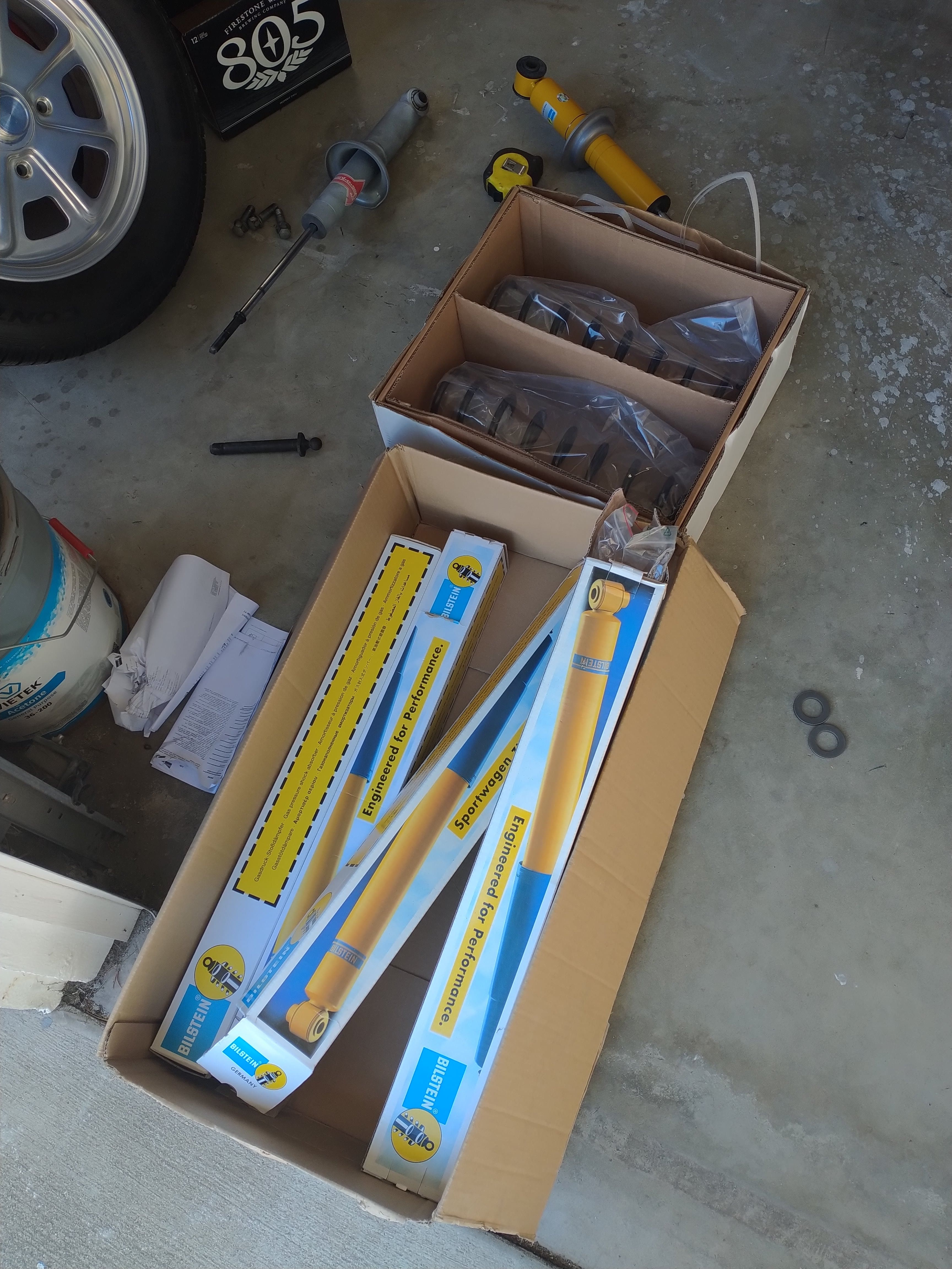 Installed new Bilstien's all around and pulled out the KYBs. (you really get what you pay for) Should make a substantial ride difference. Also replaced the rear springs with new ones from 914rubber.