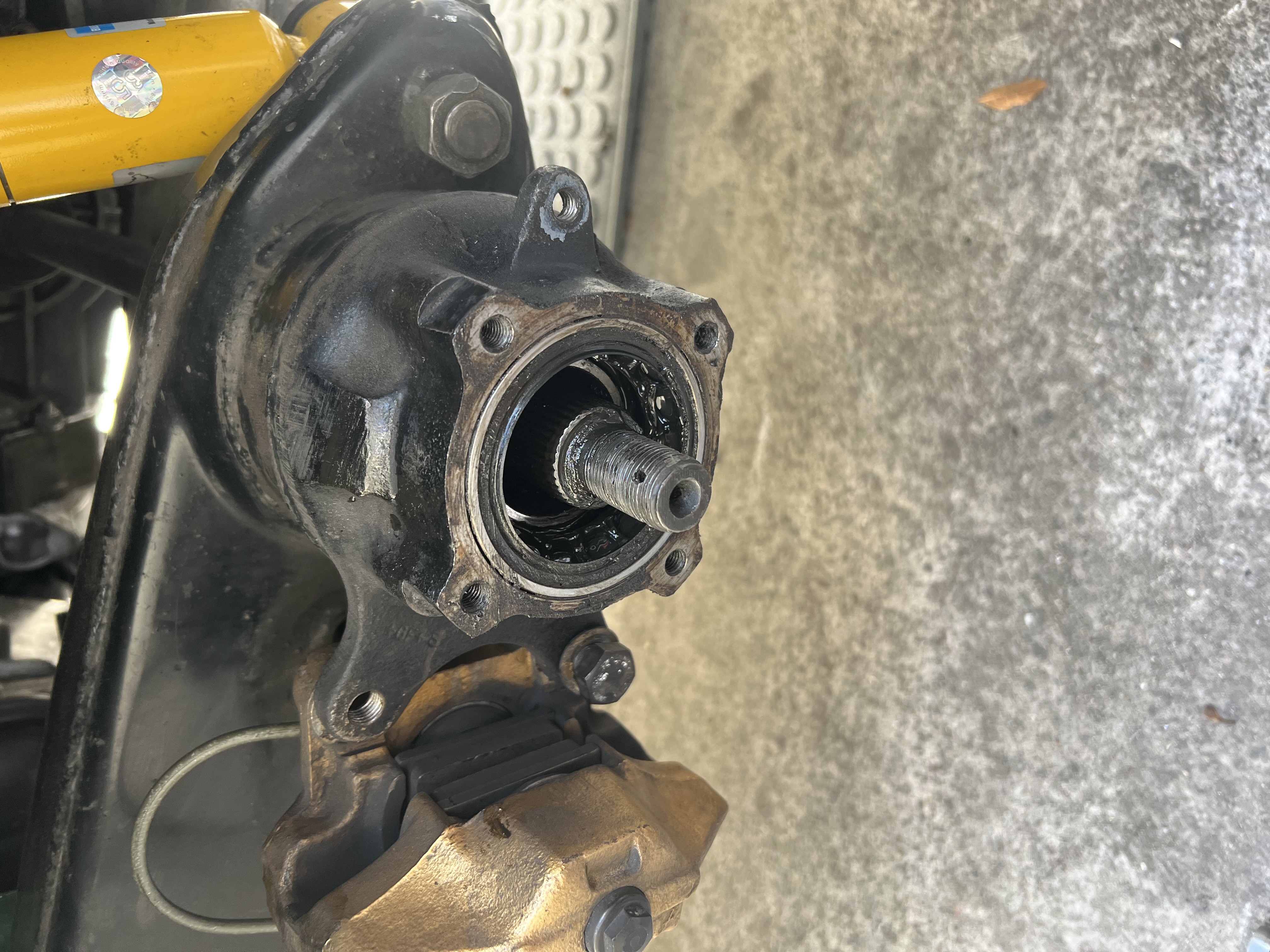 Tomorrow will be a tricky day, I will try to remove the rear hubs, in my garage, to send them to PMB, for a refurb and 5 lug reconfig. Wish me luck. (IMG:style_emoticons/default/screwy.gif) Good things coming Miserable fail, I was only able to do one… the other side was too much for me. And the bearing is still in. (IMG:style_emoticons/default/headbang.gif) |