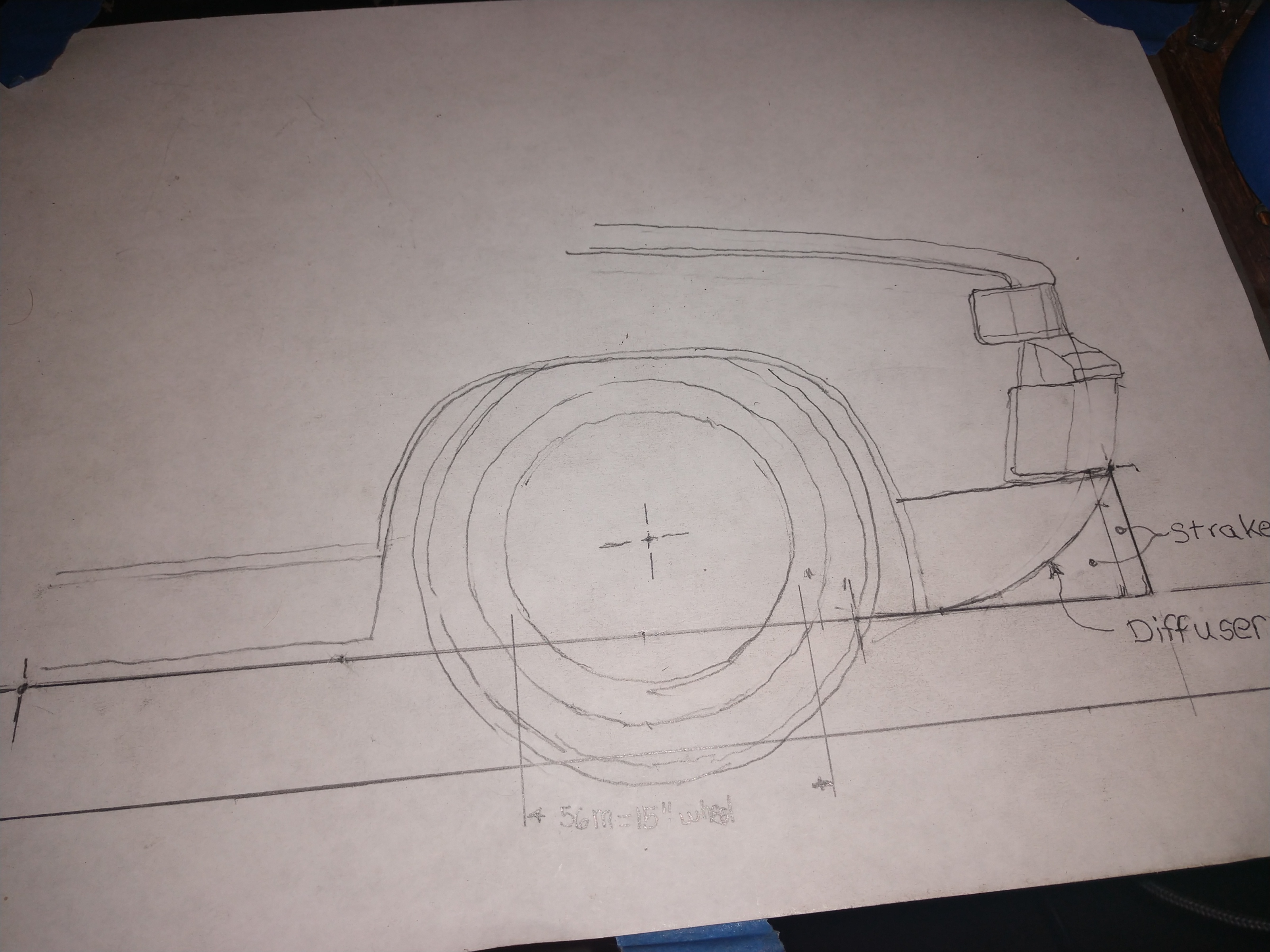 My build thread went over 65,000 viewers today and I started planning the fabrication of my diffuser. I try to practice the KISS system but that doesn't always work for me. Thinking about hanging it from the muffler bracket in the front and the bumper on the rear. Still no idea what's going on behind the rear tires.