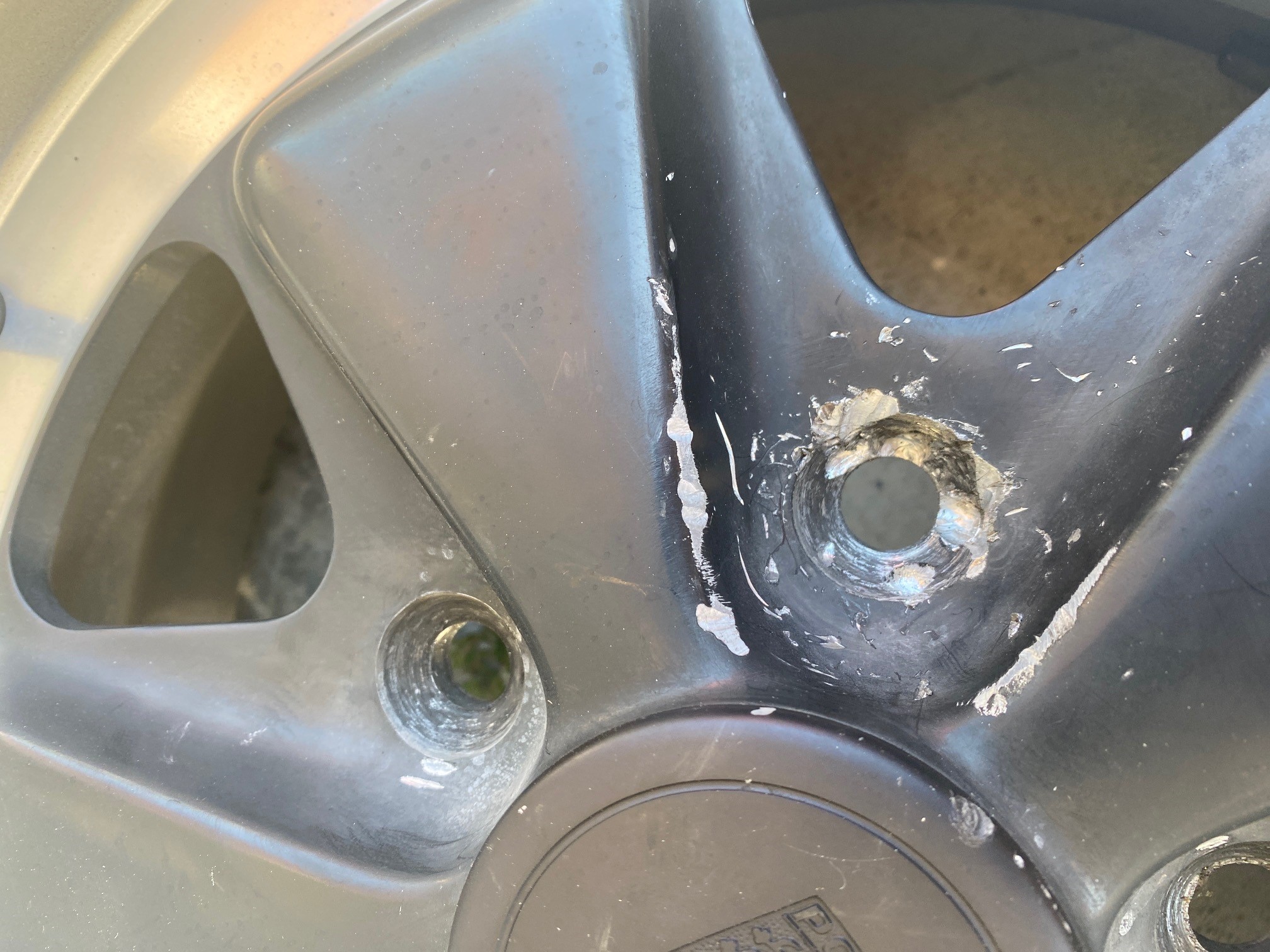 Spent a good part of Saturday trying to get these locking lug nuts off three of my 16x6 wheels on the -6. The fourth wheel had already had it removed and the ball seat and spoke ruined on the wheel (see pic). Combo pins on the removal tool shear off if the nuts were on with more than 50 ft/lbs (per instructions). Managed to remove the right front, and right rear properly with another tool I made but the pins are bending on the left front. Its on there with more than 50 ft/lbs for sure.Tempted to just use a metric tungsten carbide whole saw to but out most of the lug nut and then carefully grind out the nut with a rotary tool with a small ball shaped bit. But first I'll try to tap the holes in the lug nut, put some small allen head screws in it, and grind slots in a large socket to fit over the allens and try to torque it off.