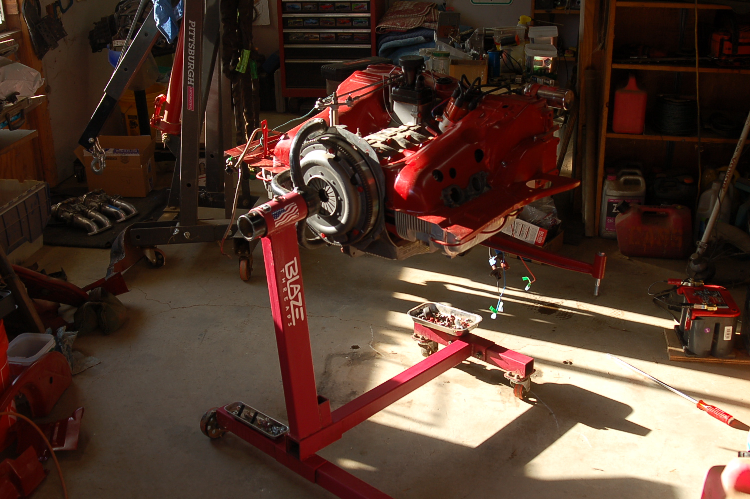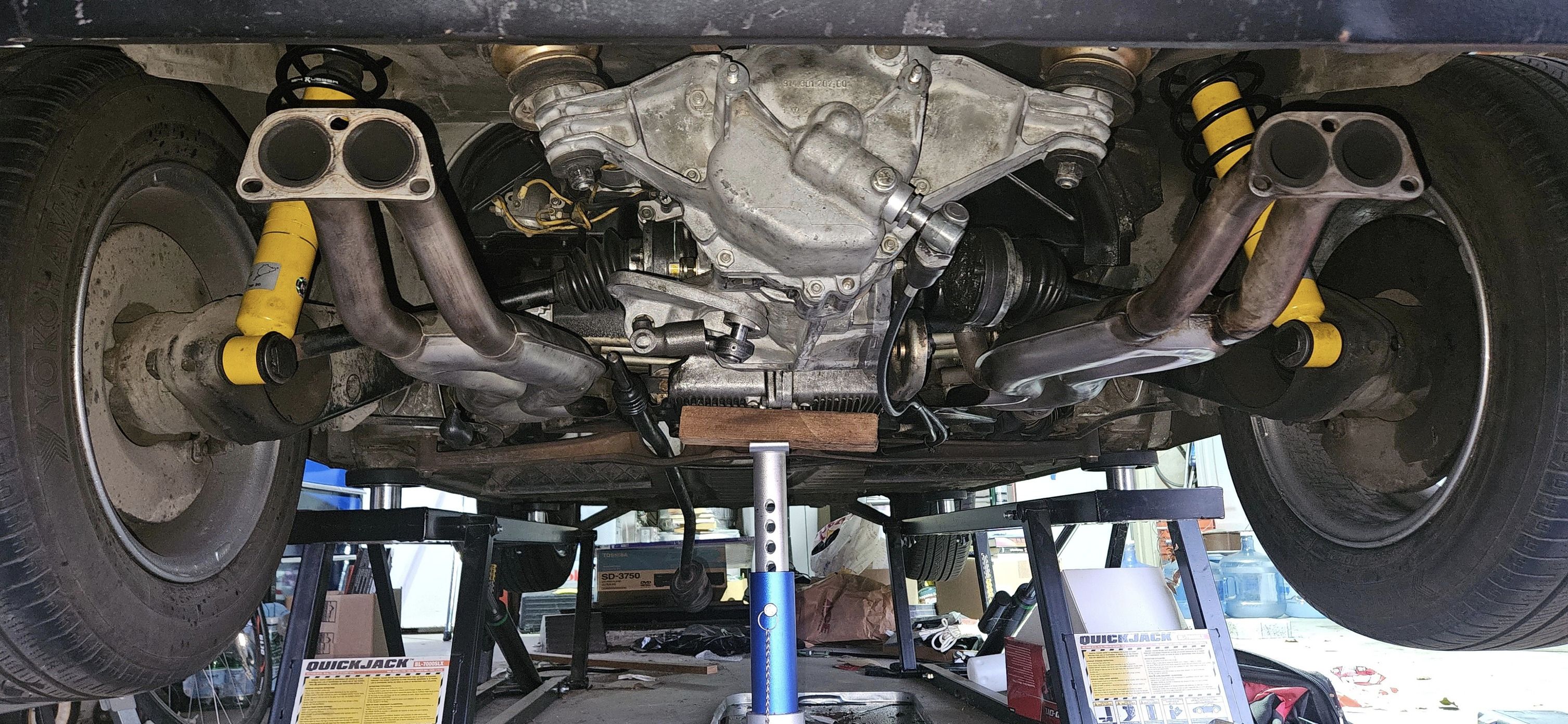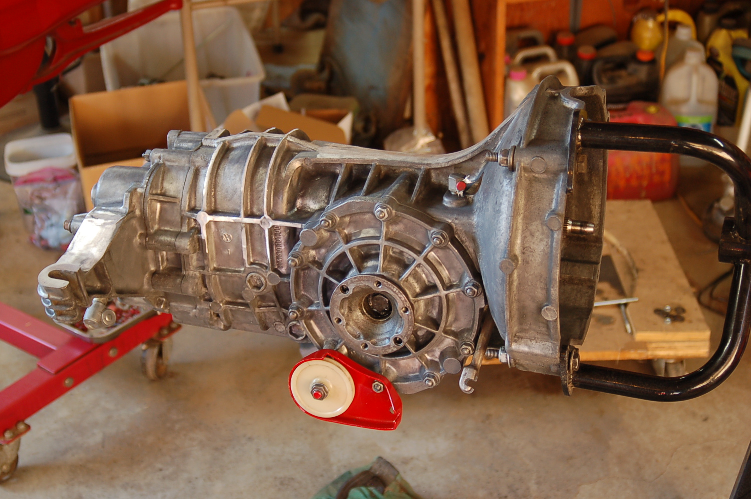 Finally got some time to finish my transmission reinstallation after replacing the flywheel, clutch disc, pressure plate, throwout bearing, flywheel spacer insert, pilot bushing and resealing the transmission (which included cleaning off all the old Tecytl, and putting the case in a Cuda hot aqueous parts washer and then thoroughly washing off the parts washer solution and drying the case). Had the ol 74 running Tuesday afternoon. I still have a number of things to do on the ol 914. Slowly but surely things are coming together.