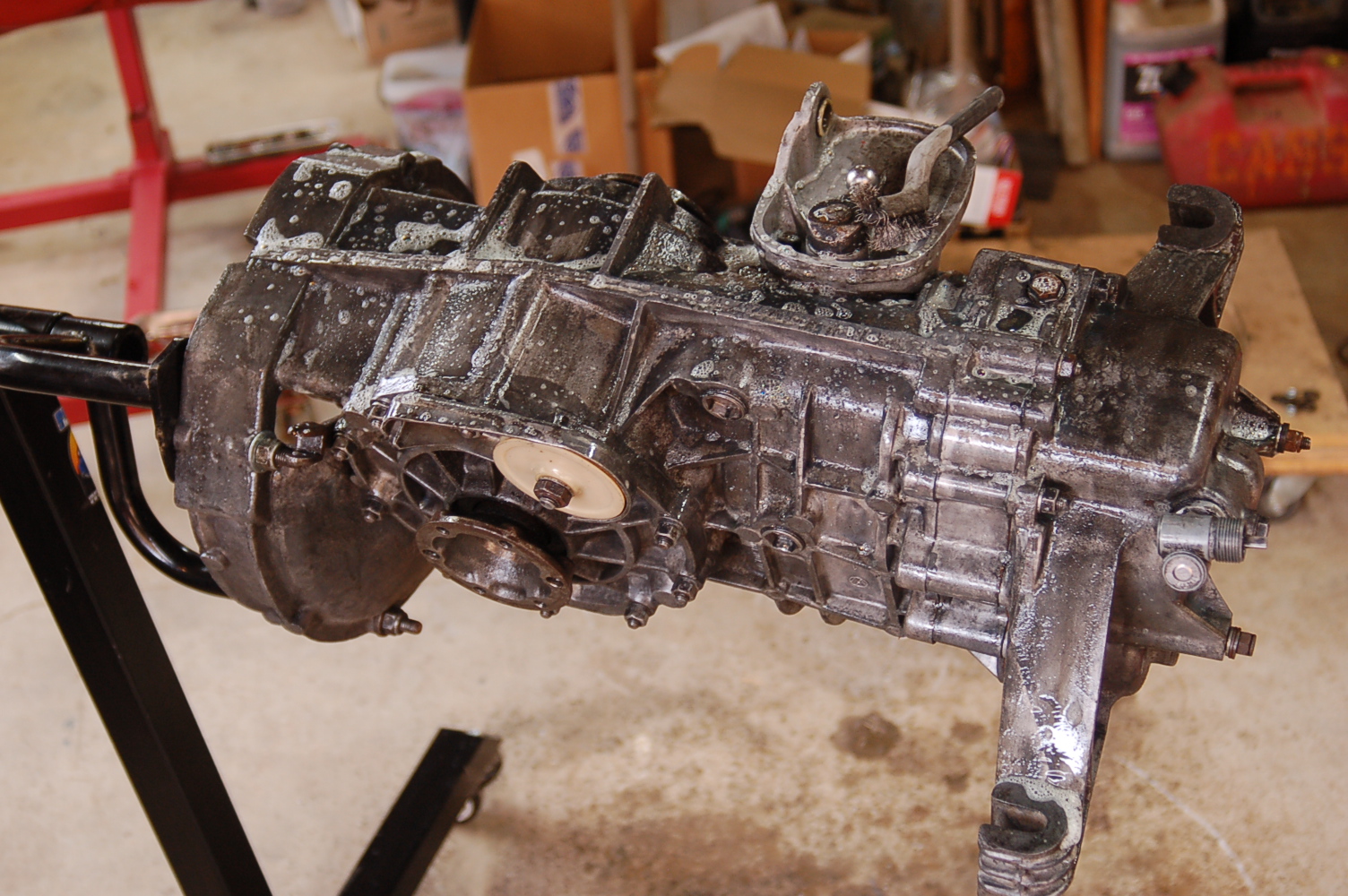 Aside from road grime and oil on the case there is the old Tecytl coating on it as well. I had to basically chisel it off with a flat head screwdriver and then I put the entire empty case in a CUDA parts washer I have access too when I did a reseal on my transaxle. Dry ice cleaning that I've seen online looks amazing. Too bad the equipment for it is expensive as sin or I'd love to do it myself.